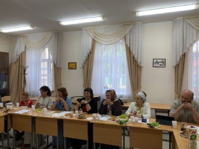 В Православном центре выпускников-педагогов радушно встретили руковолитель Образовательного центра Олег Генрихович Левенштейн и завуч Ольга Геннадьевна Разумова. За чайным столом тепло пообщались, вспомнили моменты учебы, экзаменационные волнения. Обменялись опытом работы в воскресных школах – служения Богу и ближним.