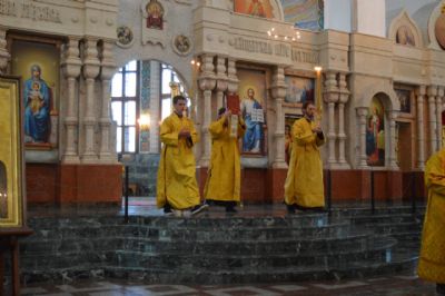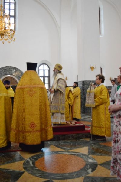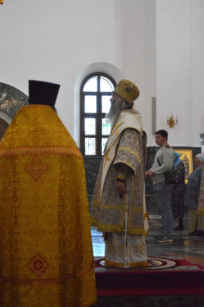 Владыке сослужили ключарь собора протоиерей Сергий Поглазов, настоятель храма мученицы Татианы протоиерей Евгений Сурков, клирики кафедрального собора иереи Никифор Захаров, Евгений Самойлов, Александр Староверов, диакон Андрей Дружинин, клирик Татианинского храма иерей Андрей Иванов и протодиакон Михаил Козловский. Песнопения исполнял хор «Благовест» под управлением регента Татьяны Черновой.