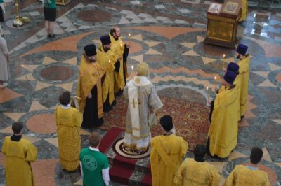 2 июля вечером, в канун Недели 3-й по Пятидесятнице, дня памяти перенесения мощей святителя Гурия Казанского, митрополит Йошкар-Олинский и Марийский Иоанн возглавил всенощное бдение в Благовещенском кафедральном соборе.