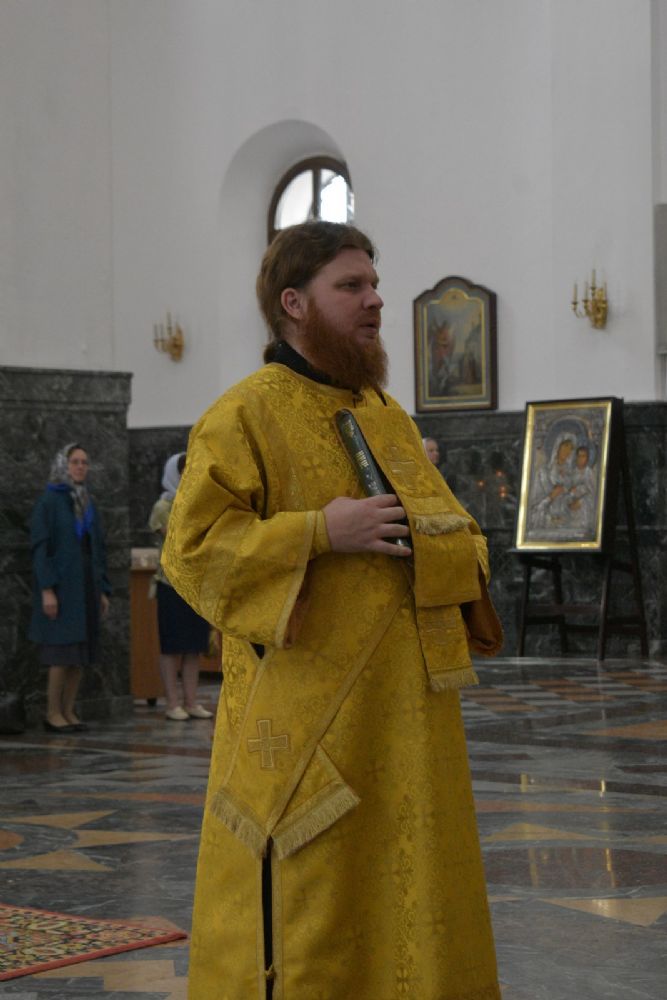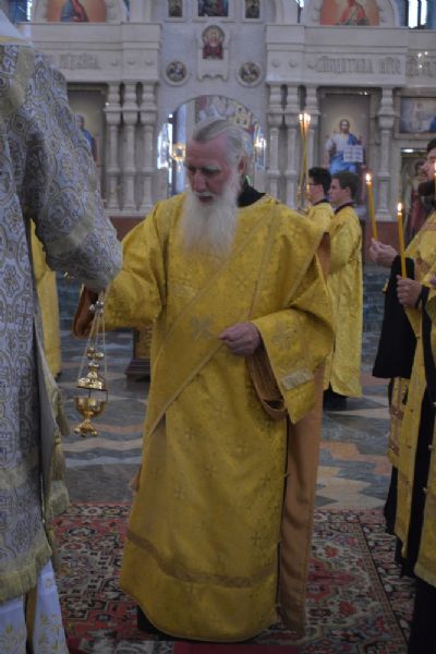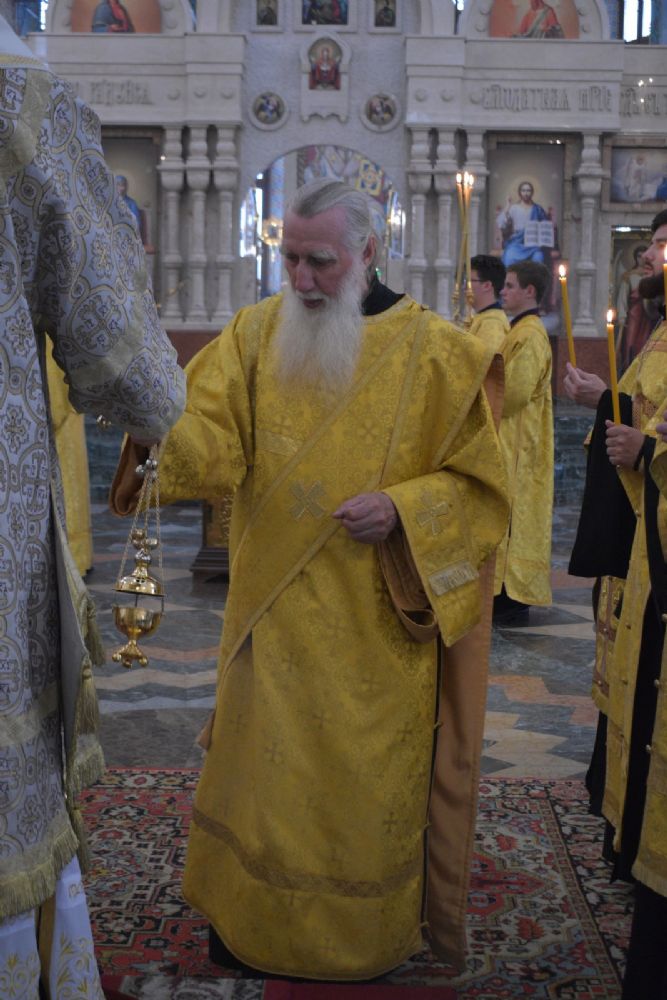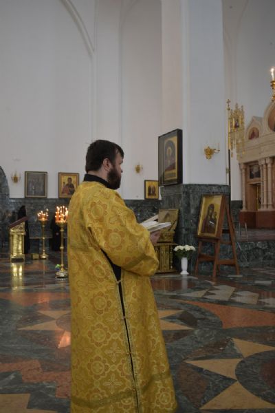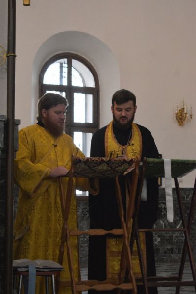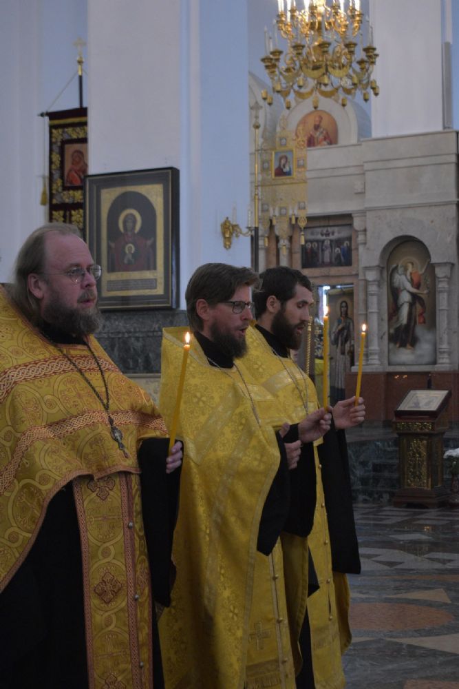 Владыке сослужили ключарь собора протоиерей Сергий Поглазов, настоятель храма мученицы Татианы протоиерей Евгений Сурков, клирики кафедрального собора иереи Никифор Захаров, Евгений Самойлов, Иоанн Милютин, диакон Андрей Дружинин, клирик Татианинского храма иерей Андрей Иванов и протодиакон Михаил Козловский. Песнопения исполнял хор «Благовест» под управлением регента Татьяны Черновой.