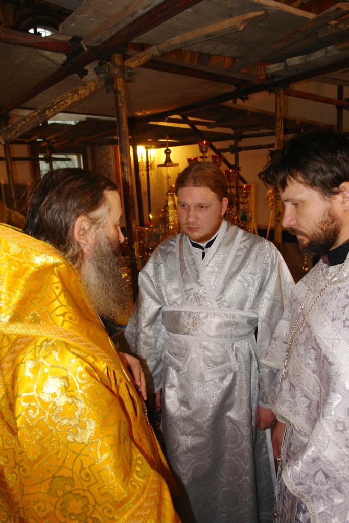 В этот воскресный день за Литургией, на которой Владыке сослужил клирик прихода иерей Алексий Михеев, было совершено таинство священства над двумя ставленниками. В диаконский чин был поставлен выпускник Нижегородской Духовной семинарии Андрей Дружинин, а в иерейский сан – диакон Алексий Скрябин.