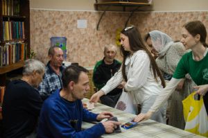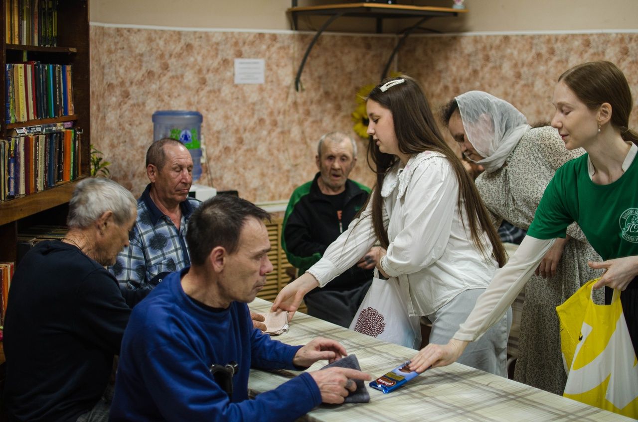 Не обошли православные добровольцы своим вниманием и категорию социально незащищенных людей. Они побывали в «Доме ночного пребывания» г. Йошкар-Олы, для постояльцев которого подготовили пасхальную сценку и вручили подарки. Также ребята объехали церкви города, поздравив с Воскресением Христовым людей, вынужденных просить милостыню, и подарили пакеты с наборами бытовой химии. Люди были очень рады – ведь для них это важная весточка, что они кому-то нужны и кто-то специально для них приготовил подарки.