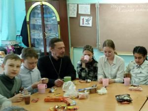 Поблагодарив за угощения, школьники в свою очередь пригласили отца Андрея к себе в школу на ответное чаепитие.