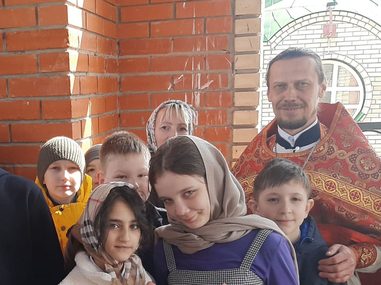 Встреча состоялась на второй неделе после Пасхи. Ребята вместе с педагогом Мариной Анатольевной угостили отца Андрея вкусным чаем со сладостями и подарили торт.