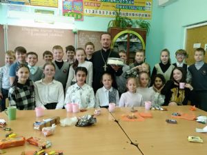 Священник рассказал детям о главных православных праздниках и ответил на все вопросы. В подарок от батюшки класс получил книги об основах жизни и наставлениях преподобного Паисия Святогорца. Все остались очень довольны встречей и искренним общением.