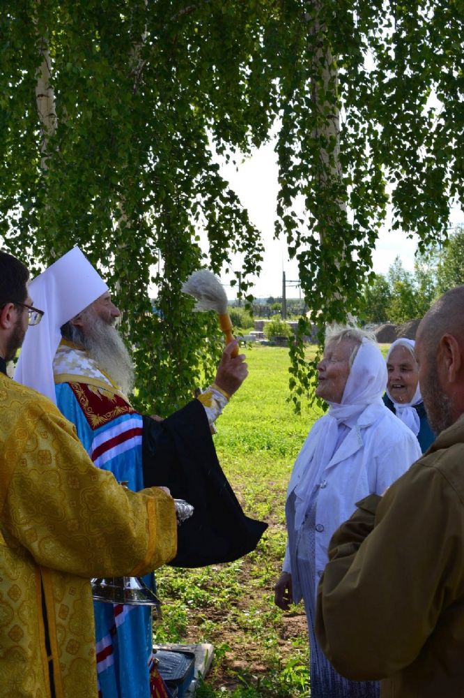 Владыке сослужили благочинный Лугово-Марийского церковного округа Йошкар-Олинской епархии, настоятель Никольского храма с. Кожла-Сола протоиерей Алексий Никитин и протодиакон Михаил Козловский.