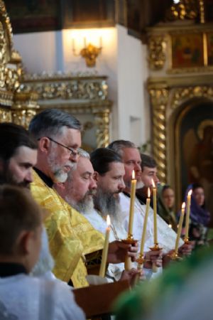 Его Преосвященству сослужило духовенство Волжской, Йошкар-Олинской и Чебоксарской епархий. Песнопения исполнял архиерейский хор под управлением Любови Михеевой.