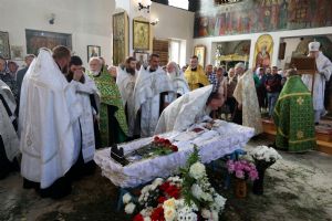 Каждому из нас предстоит перешагнуть порог вечной жизни и предстать перед Богом. Сегодня мы видим, сколько один почивший человек собрал вокруг себя любящих его собратьев – священнослужителей и духовных чад. Сколько людей, на сегодняшнем скорбном событии, вспомнили о том, что они тоже смертны. Поэтому, событие с одной стороны скорбное – мы расстаемся с почившем священнослужителем, но мы надеемся, что он идет в Царство Небесное, где ему будет намного лучше, нежели здесь, в земной жизни. А каждый из нас, глядя на то, что настала смерть телесная, вспомнил о том, что и мы когда-то перешагнем порог вечной жизни и будем предстоять пред Богом с ответом за свои дела, слова и пожелания. Постараемся последовать доброму примеру всех тех святых, которых мы почитаем и молимся им, ибо они были такие же люди, как мы, но, насколько могли, они боролись со своими страстями и шли вслед за Христом. Желаю всем нам воскреснуть и в духовном смысле, и в буквальном смысле на Страшном Суде восстать для вечной жизни со Христом Иисусом Господом нашим».