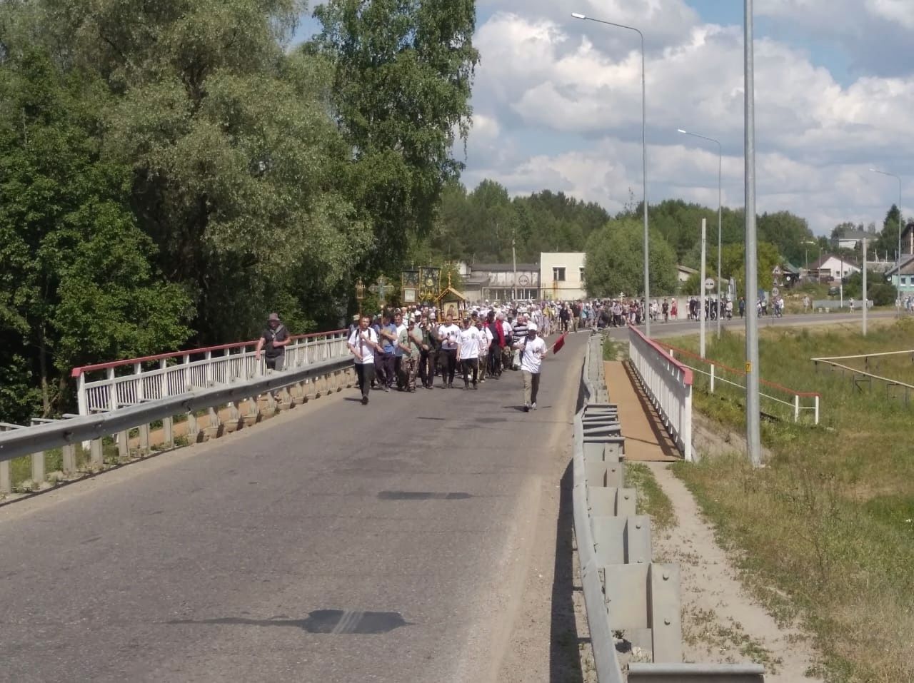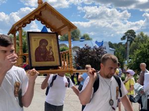 Этот крестный ход с особо почитаемой на приходе иконой Богородицы уже стал традиционным – он проходит ежегодно в последнее воскресенье июня и с каждым разом собирает все больше верующих. Вот и в этом году под покровом Божией Матери шли не только прихожане из Новых Парат, но и паломники из других приходов Волжской епархии, среди них много детей и молодежи.