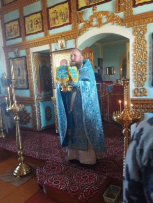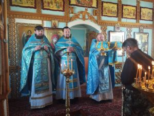 Литургию совершили настоятель храма иерей Игорь Лебедев и священники, сопровождающие крестный ход – настоятель храма Владимирской иконы Божией Матери с. Владимирское Горномарийского района иерей Алексий Васюткин и настоятель храма Покрова Пресвятой Богородицы с. Покровское Горномарийского района иерей Сергий Иванов. Храм был полон прихожан и паломников, многие причастились Святых Христовых Таин.