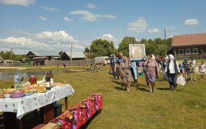 Далее маршрут крестного хода лежал по Килемарскому району в село Визимьяры. По пути сделали остановку в деревне Евсейкино, где чудотворный образ хлебосольно встретили местные жители. Отец Алексий Васюткин и отец Сергий Иванов отслужили молебен, на который собрались не только жители Евсейкино, но и расположенных рядом деревень Алатайкино и Пинжедыр. И Владимирская икона Богородицы была отправлена в Визимьяры, в недавно построенный в селе храм в честь иконы Божией Матери «Умиление».