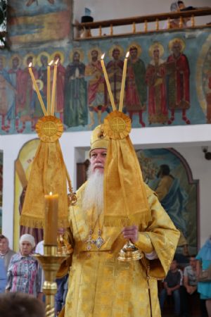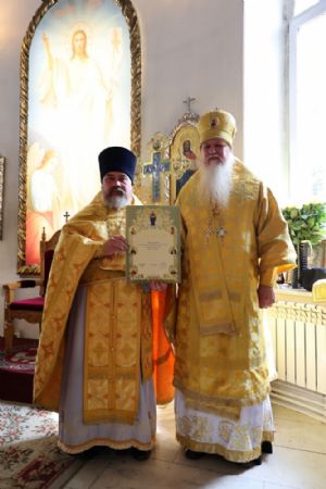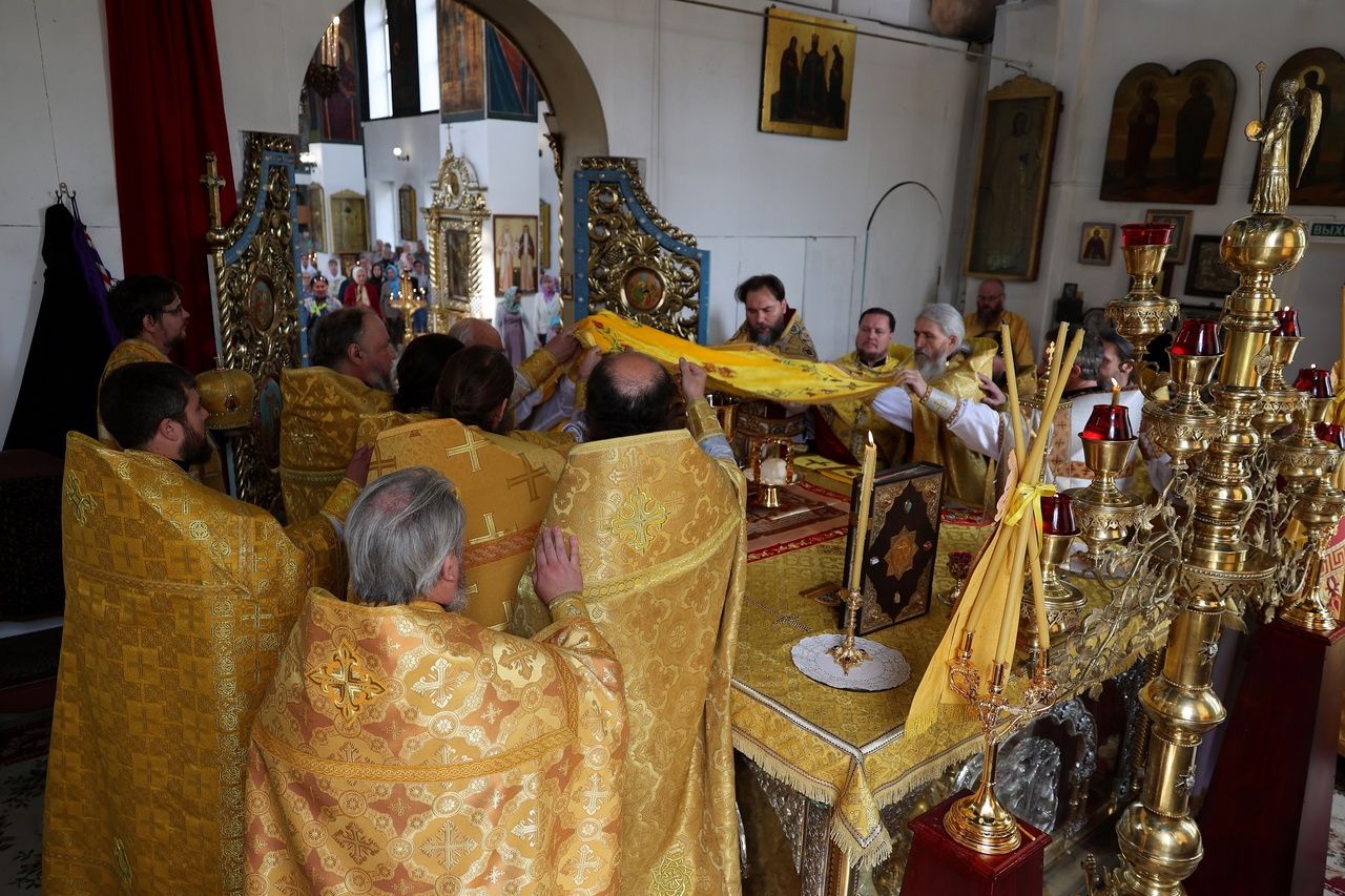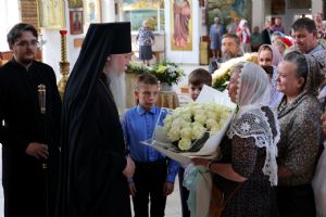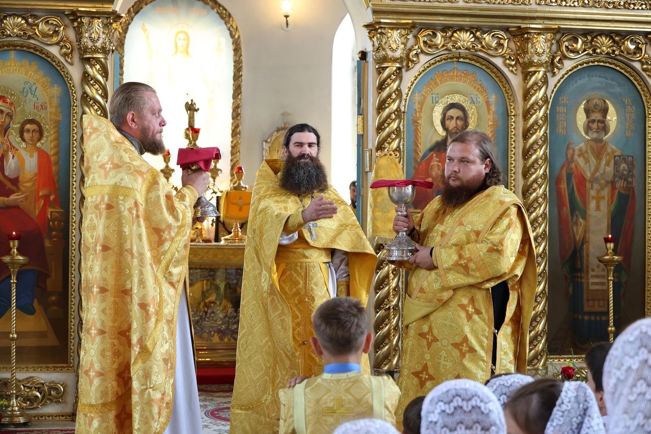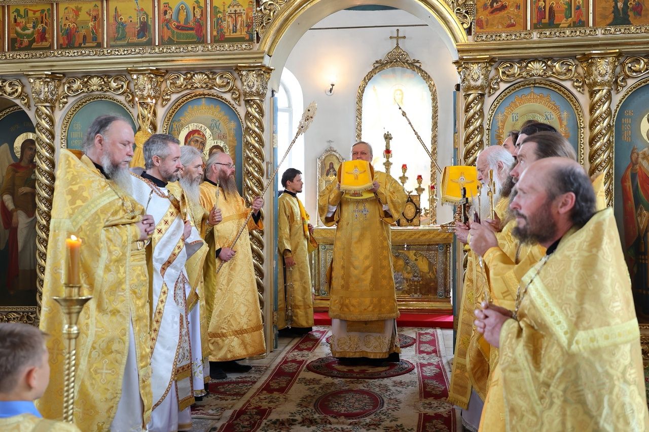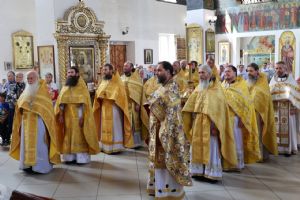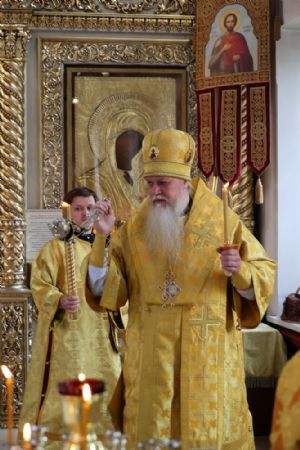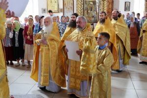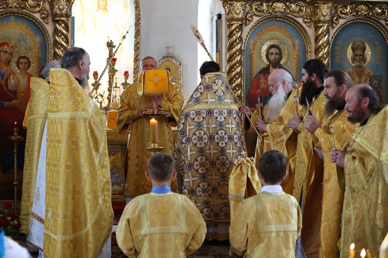 Его Преосвященству сослужил сонм священников, съехавшихся со всех концов епархии, чтобы поздравить архипастыря. Песнопения исполнял хор собора под управлением Нины Коноваловой и детско-юношеский хор под руководством Марии Захаровой.