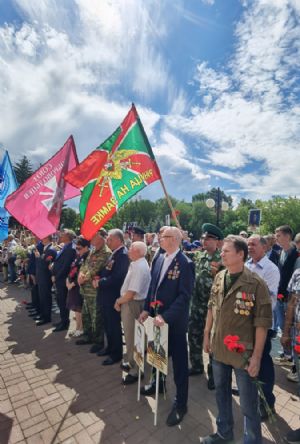 Память о воинах, погибших в вооруженных конфликтах, собравшиеся почтили минутой молчания и возложением цветов к стеле.