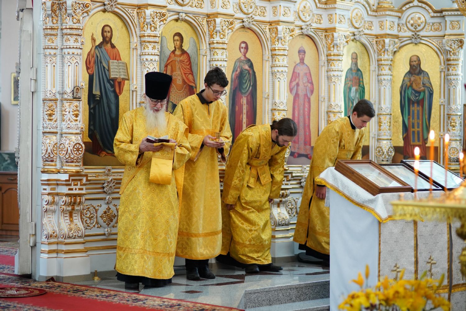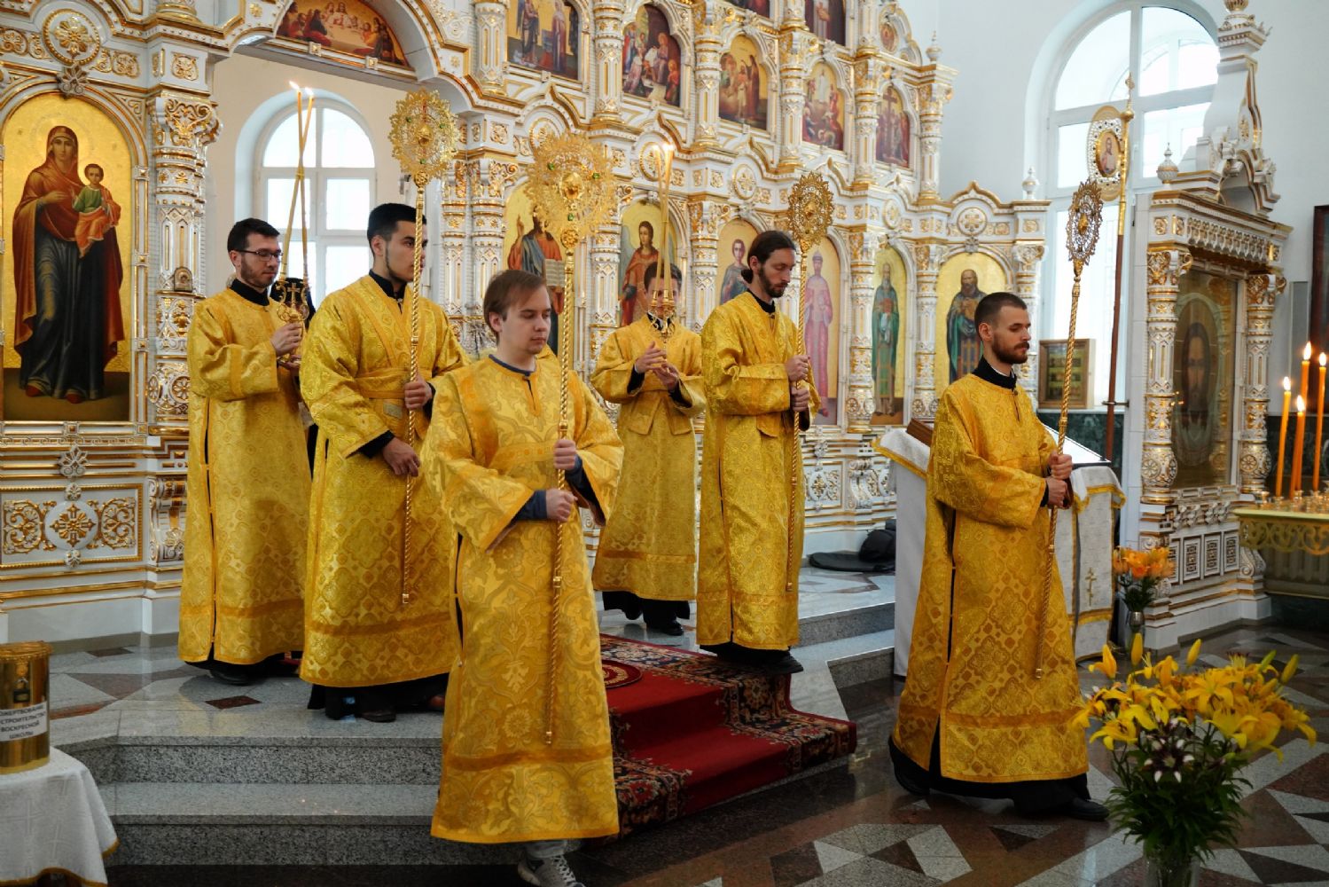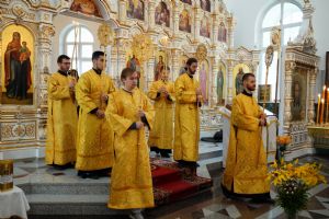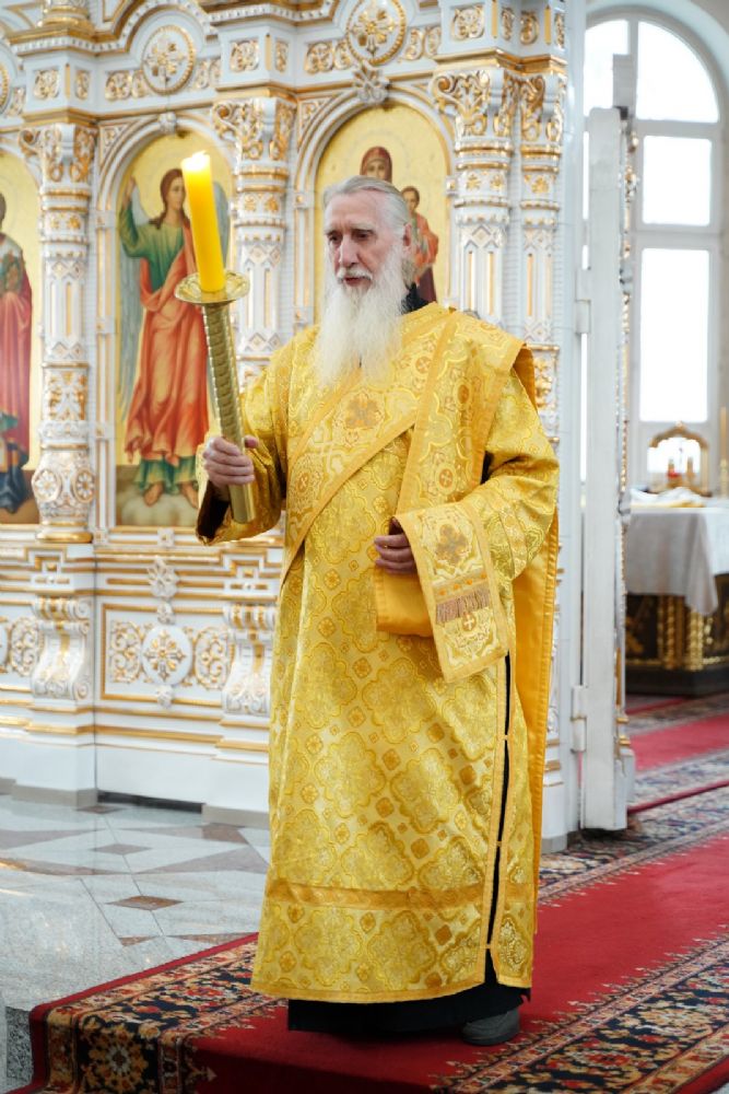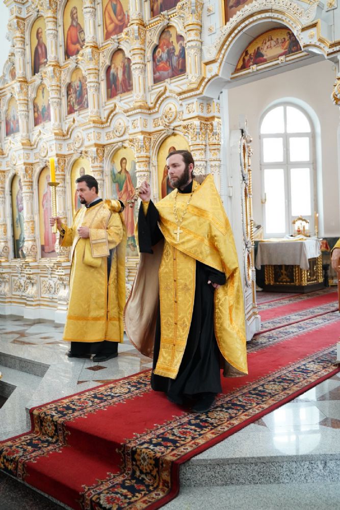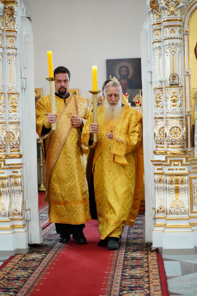 Владыке сослужили секретарь Йошкар-Олинского епархиального управления иеромонах Серафим (Пасанаев), настоятель собора иерей Алексий Кирюшкин, клирики собора иерей Леонид Вылекжанин и диакон Алексий Кузнецов и протодиакон Михаил Козловский. Песнопения исполнял хор собора под управлением Елены Поглазовой.