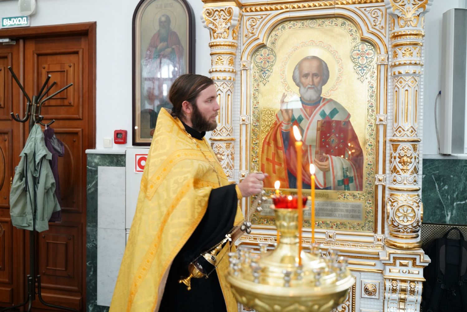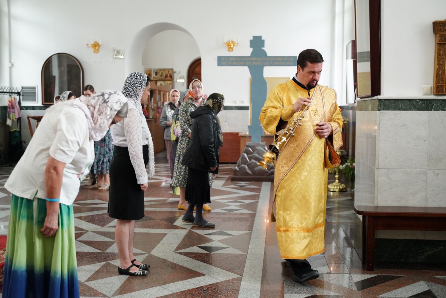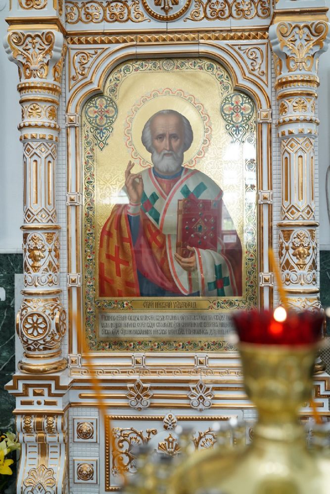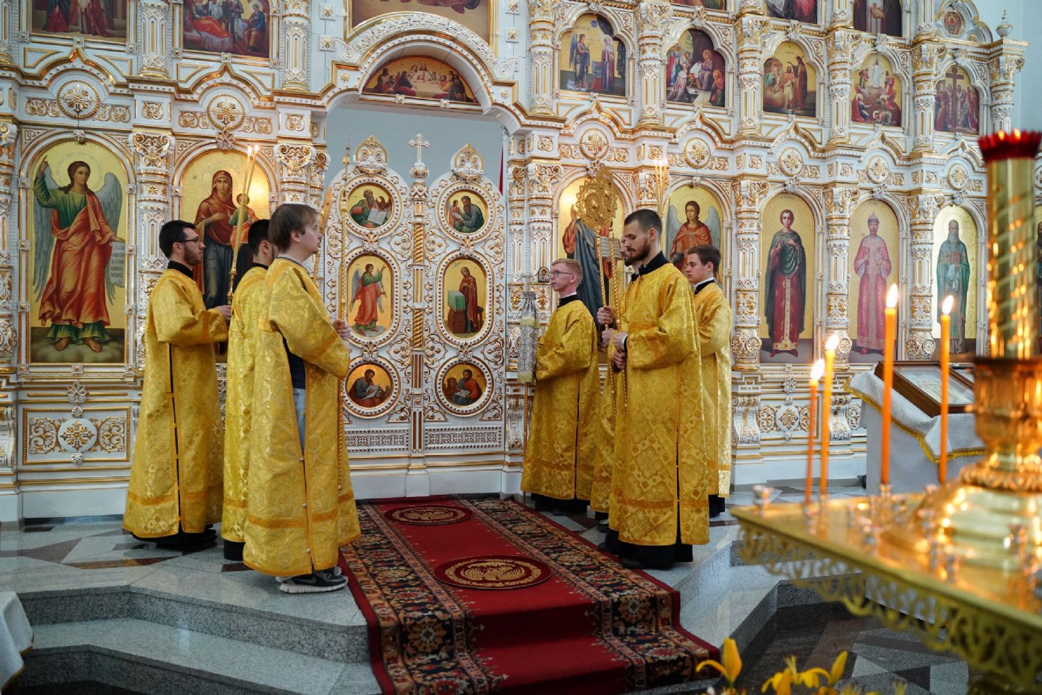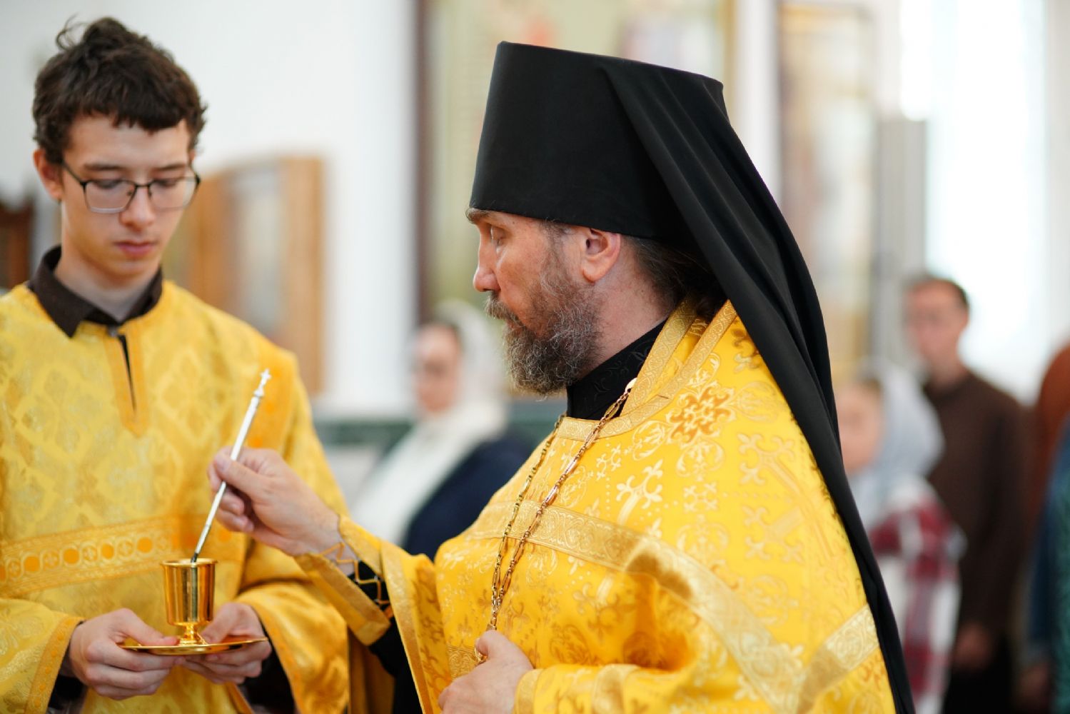 Владыке сослужили секретарь Йошкар-Олинского епархиального управления иеромонах Серафим (Пасанаев), настоятель собора иерей Алексий Кирюшкин, клирики собора иерей Леонид Вылекжанин и диакон Алексий Кузнецов и протодиакон Михаил Козловский. Песнопения исполнял хор собора под управлением Елены Поглазовой.