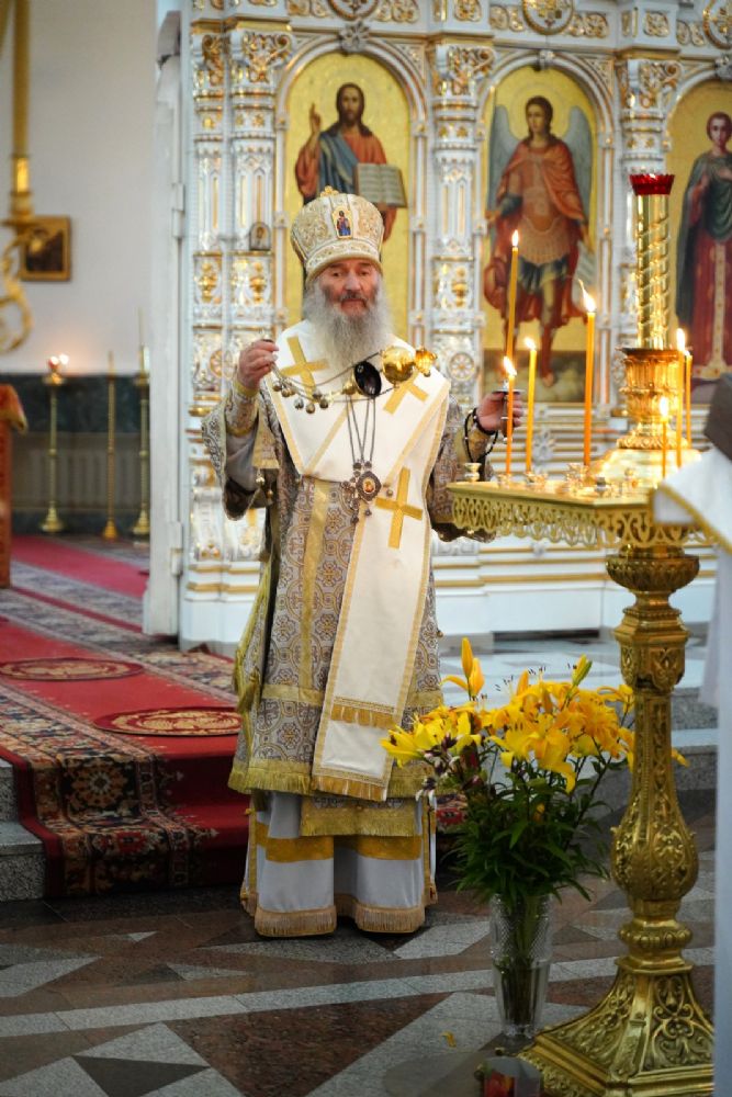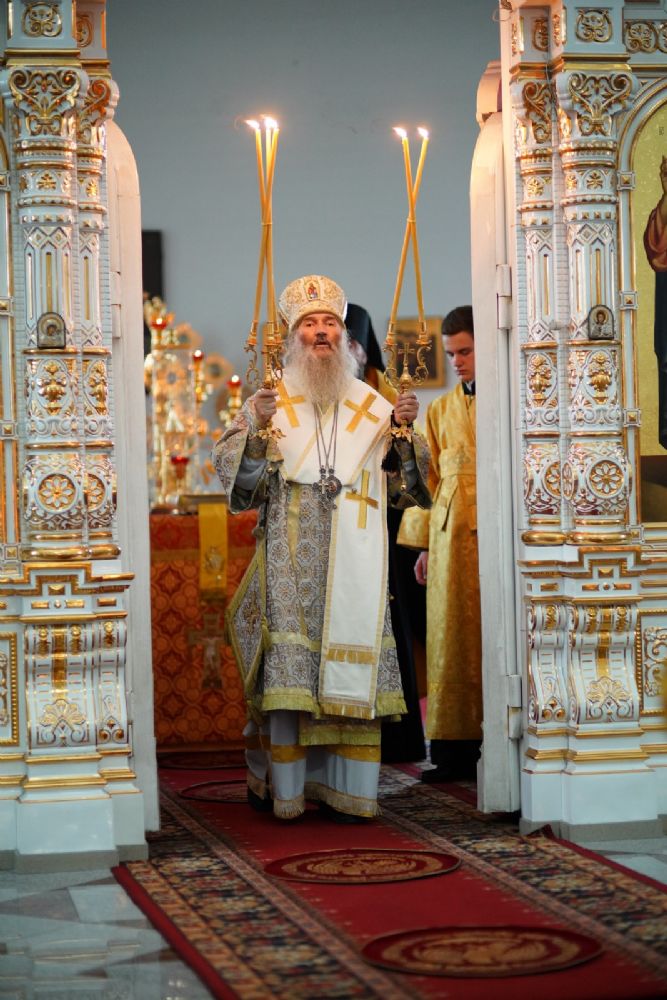 15 июля вечером, накануне Недели 6-й по Пятидесятнице, дня памяти святителя Филиппа Московского, митрополит Йошкар-Олинский и Марийский Иоанн возглавил всенощное бдение в Воскресенском соборе г. Йошкар-Олы.