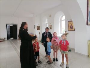 Ребят радушно встретил настоятель храма иерей Матфей Сапаев, провел экскурсию, рассказал ребятам о храме, о правилах поведения, о том, как общаться с Богом. Дети научились правильно прикладываться к иконам, ставить свечи.