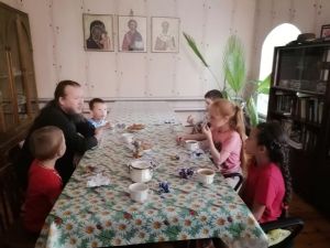 После осмотра всех достопримечательностей ребята тепло пообщались с отцом Матфеем за чаепитием, поговорили на интересующие их темы.