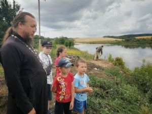Ребятам хотелось много узнать, поэтому они задавали разные вопросы батюшке, а он отвечал им. Некоторые из детей впервые оказались на территории церкви, им было особенно интересно посмотреть всё вокруг. Новый каменный храм стоит на высоком берегу реки Лаж и с его территории открывается замечательной красоты вид на окрестную природу.