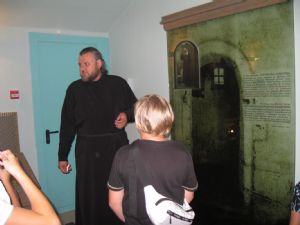 В монастыре нас встретил брат отца Николая – протоиерей Иоанн Барсуков, настоятель Никольского кафедрального собора г. Казани. Он провел нас в собор Казанской иконы Божией Матери, где мы приложились к иконам, поставили свечи, подали записки о здравии наших родных и близких.