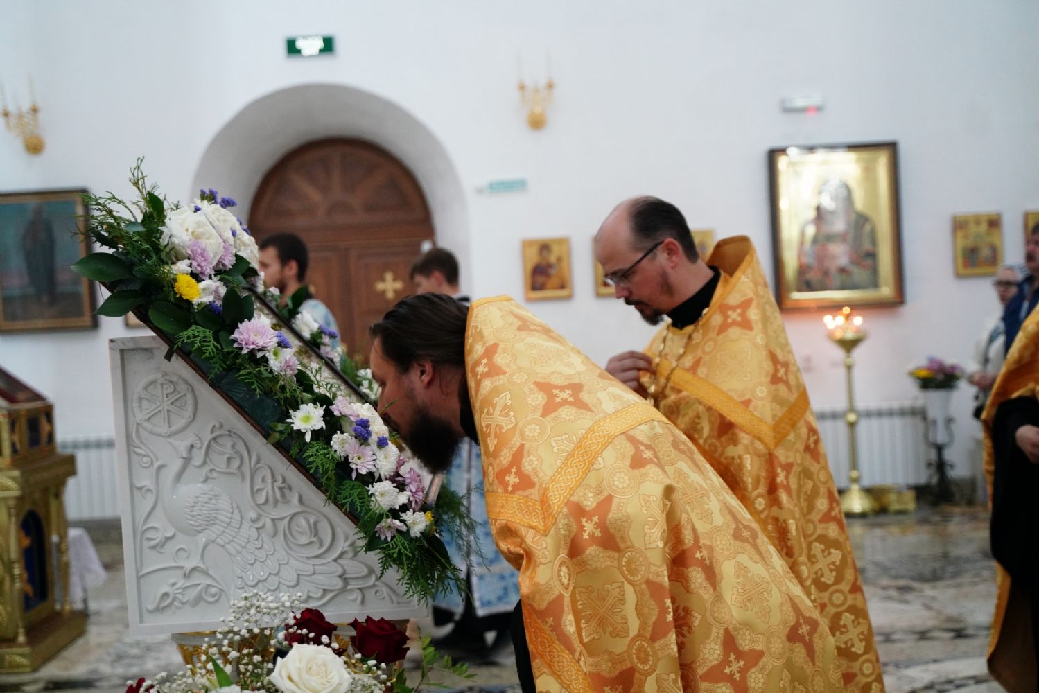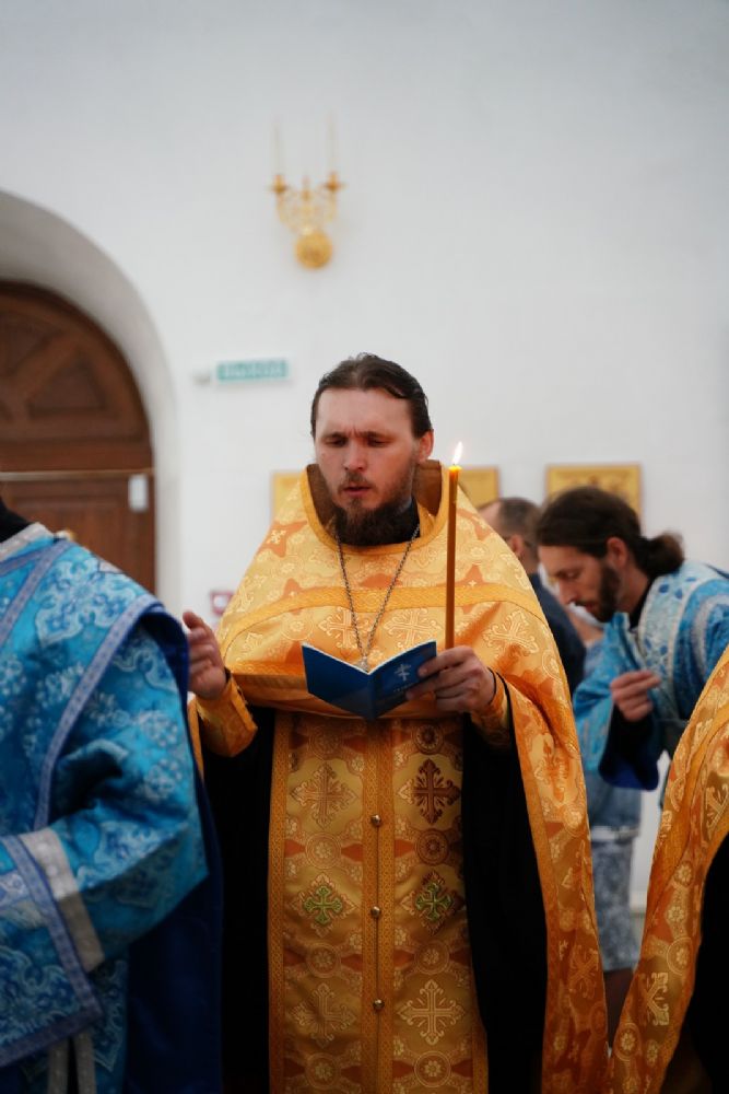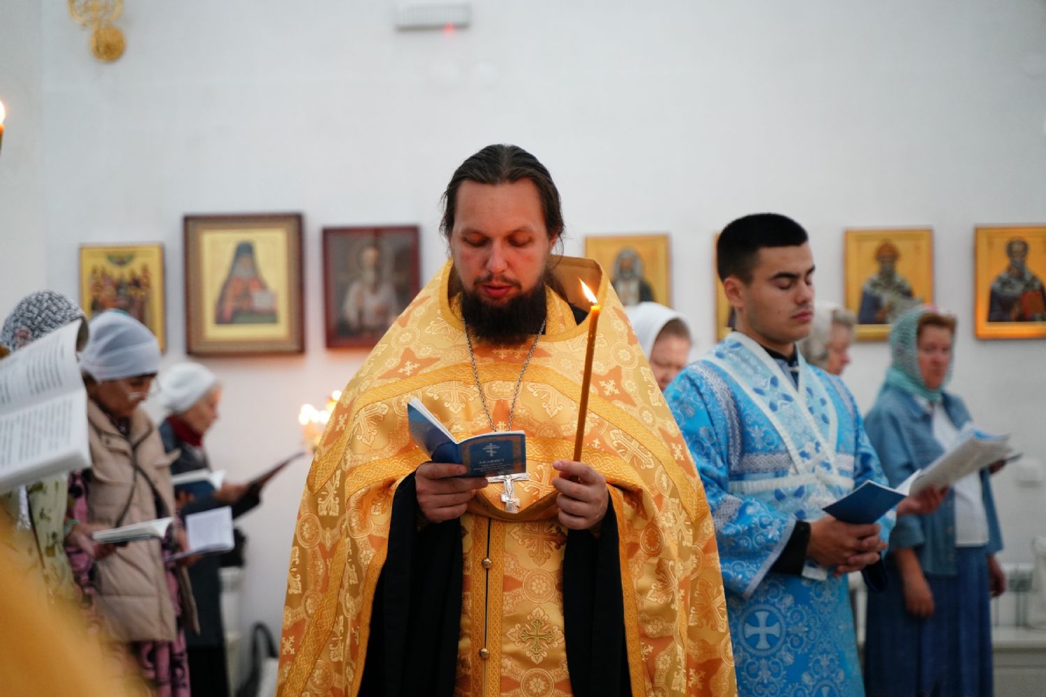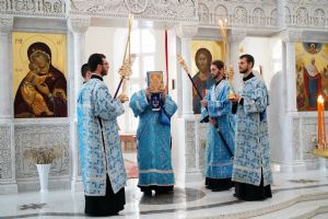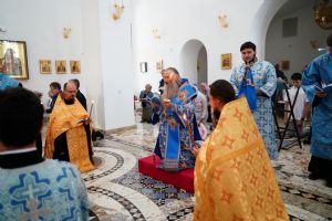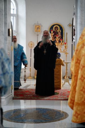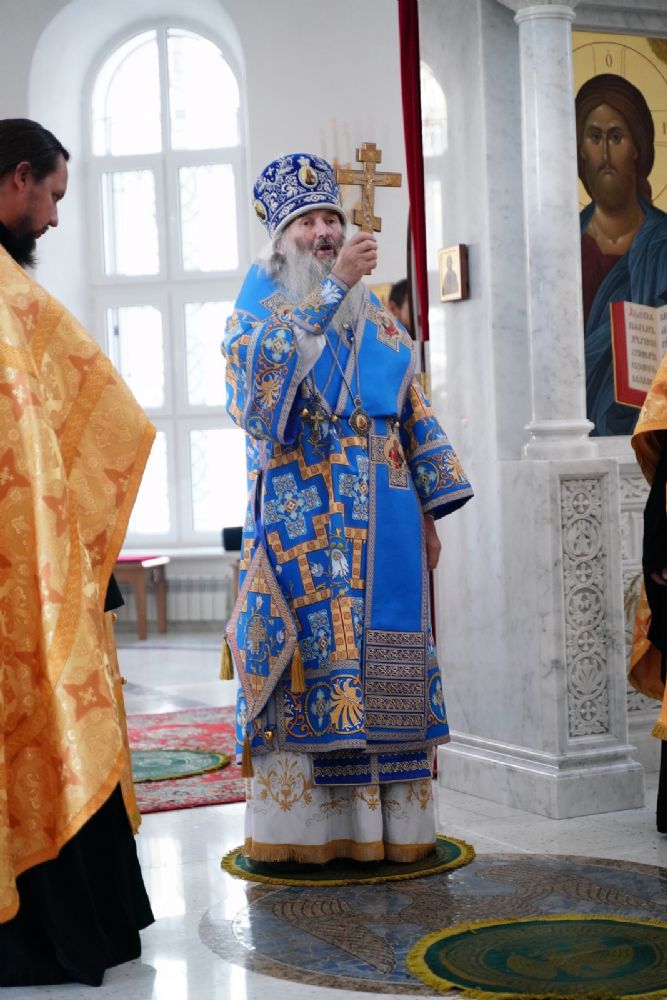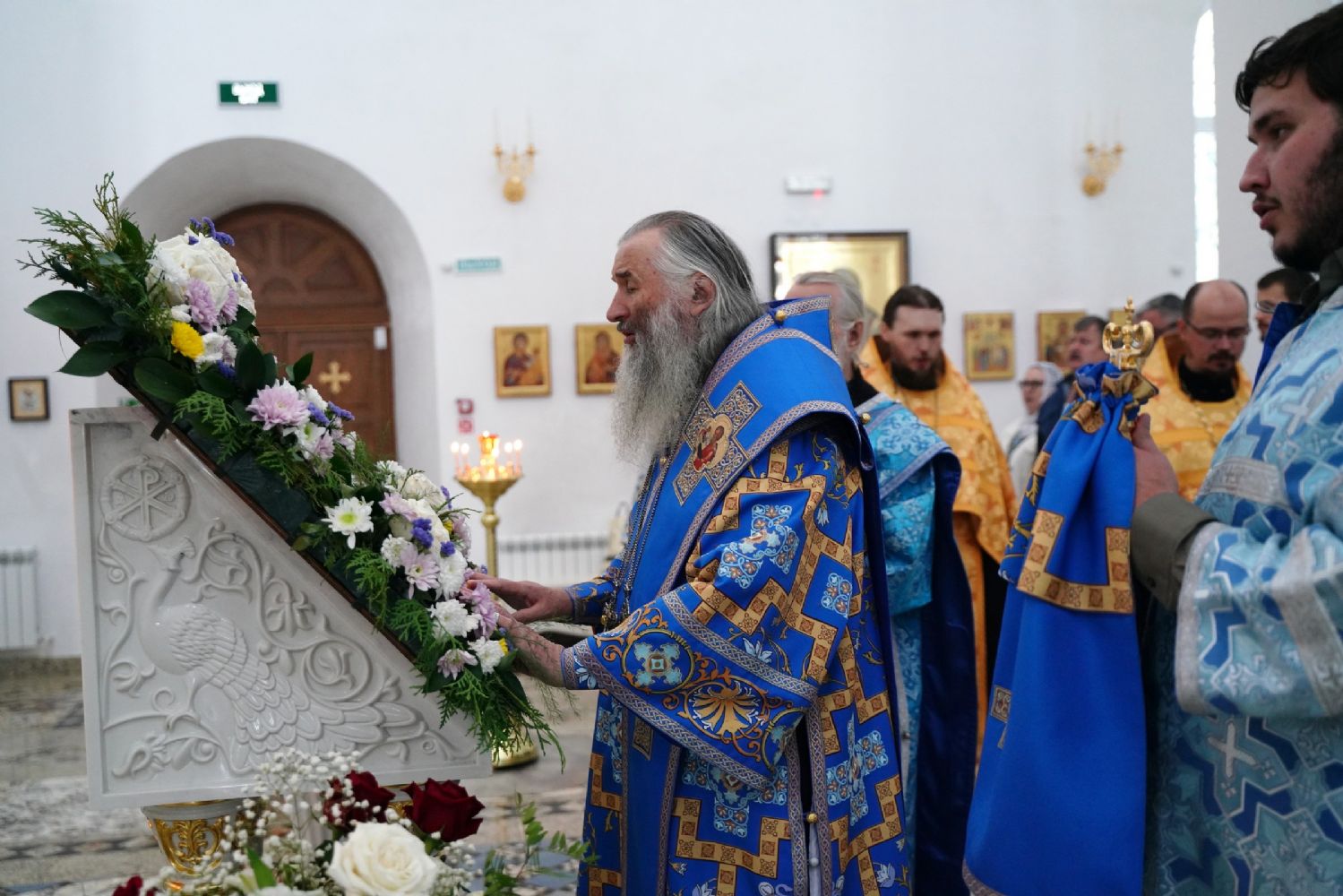 Владыке сослужили настоятель храма иерей Алексии Михеев, клирики храма иереи Игорь Коваль, Димитрий Лукьянов и протодиакон Михаил Козловский. Песнопения исполнял хор храма под управлением Александры Ивановой.
