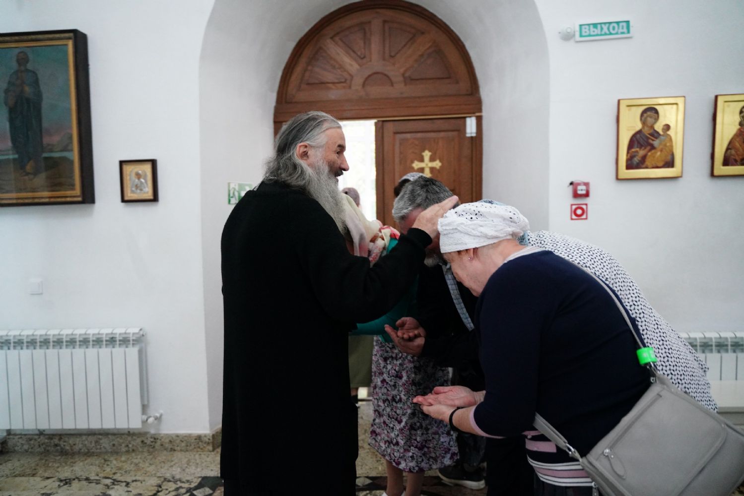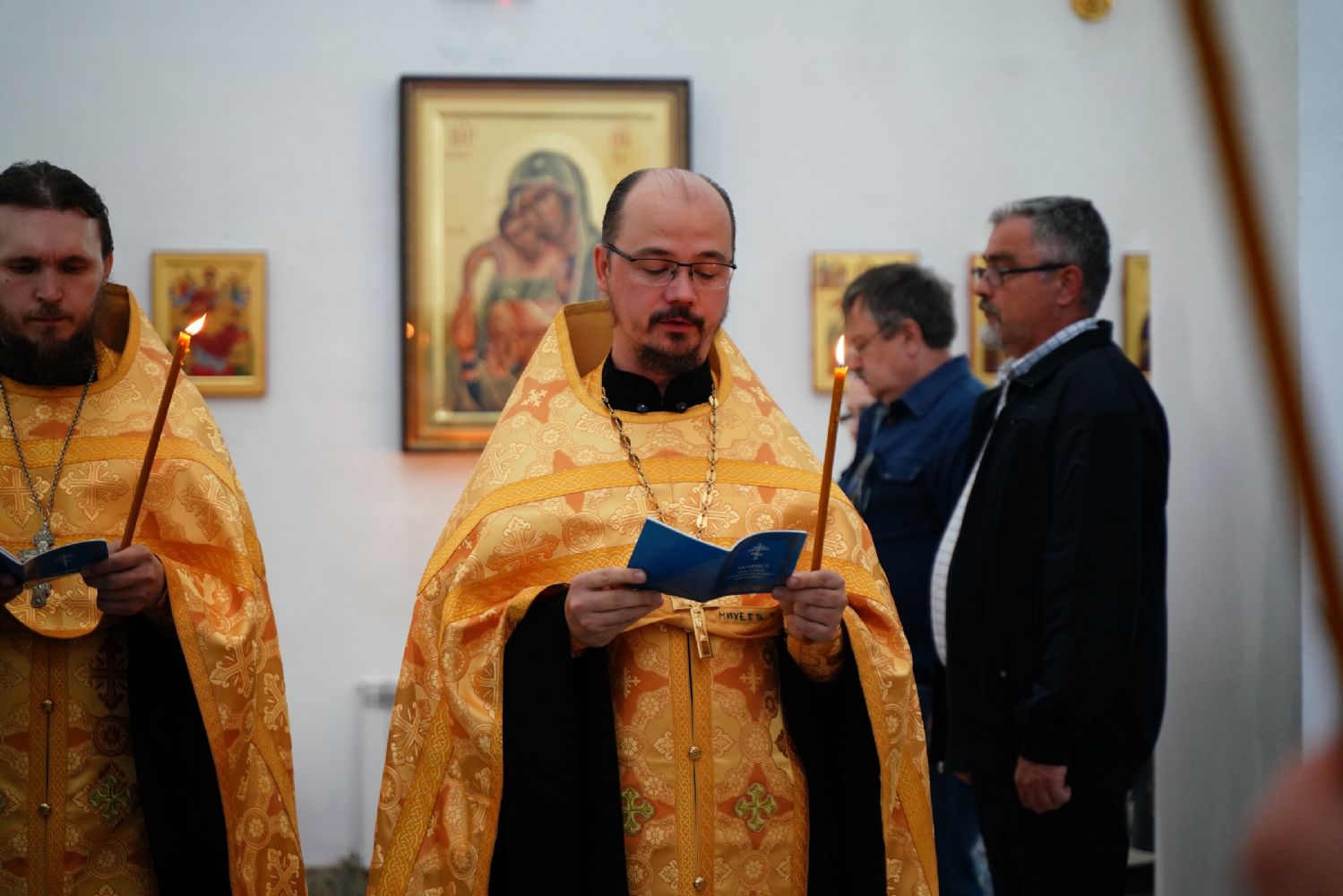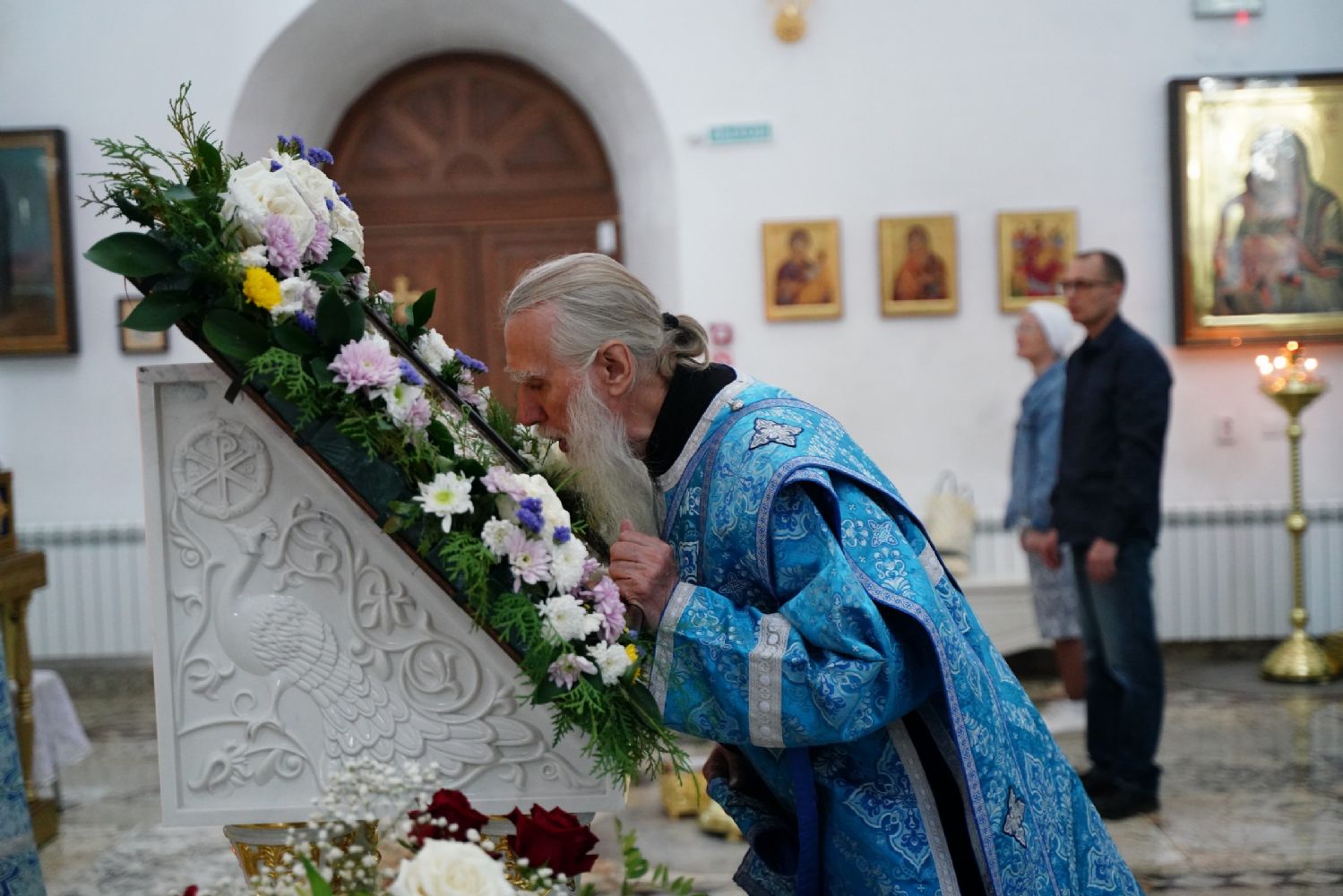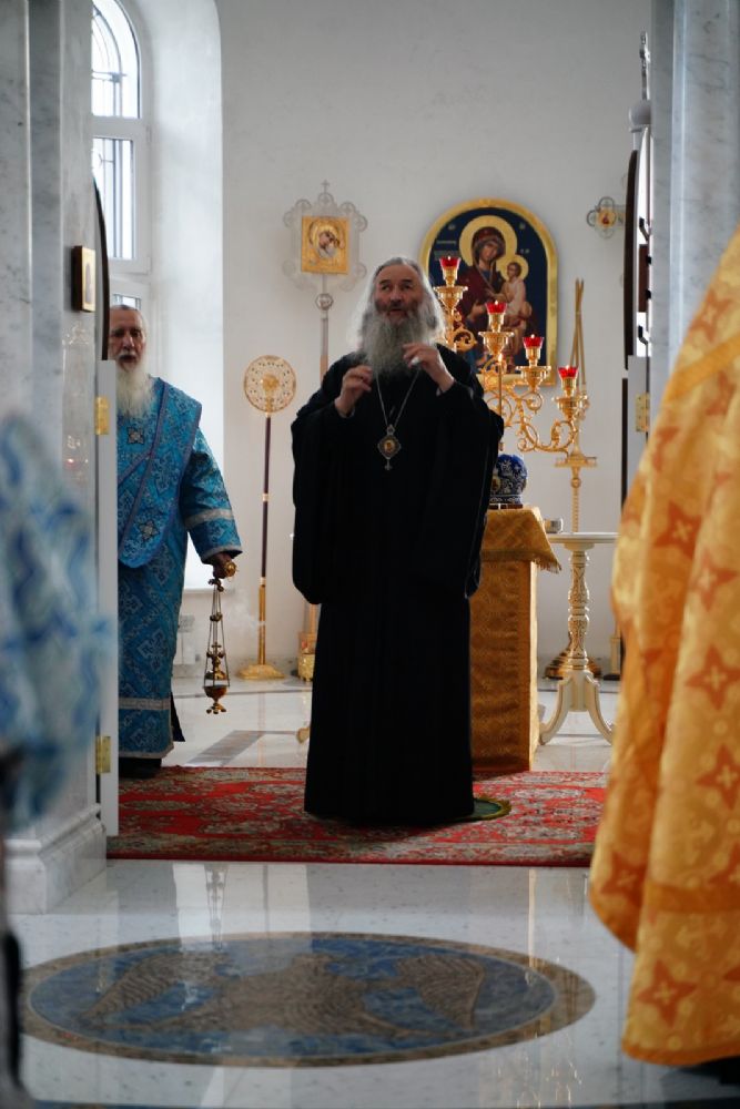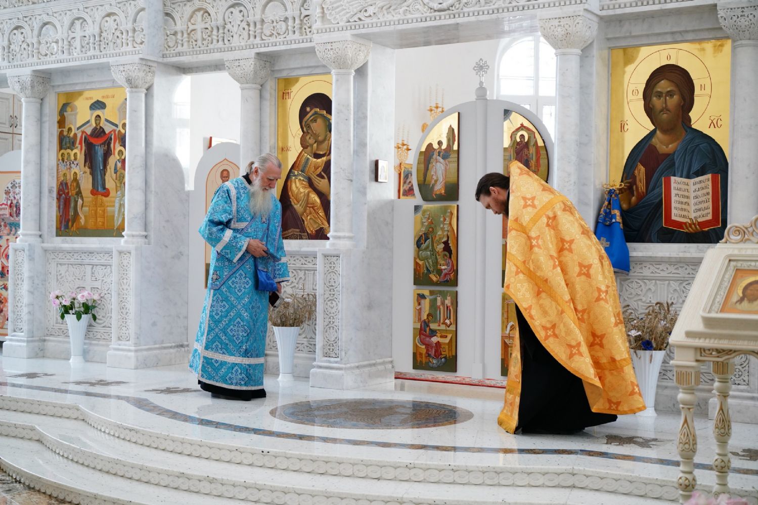 Владыке сослужили настоятель храма иерей Алексии Михеев, клирики храма иереи Игорь Коваль, Димитрий Лукьянов и протодиакон Михаил Козловский. Песнопения исполнял хор храма под управлением Александры Ивановой.