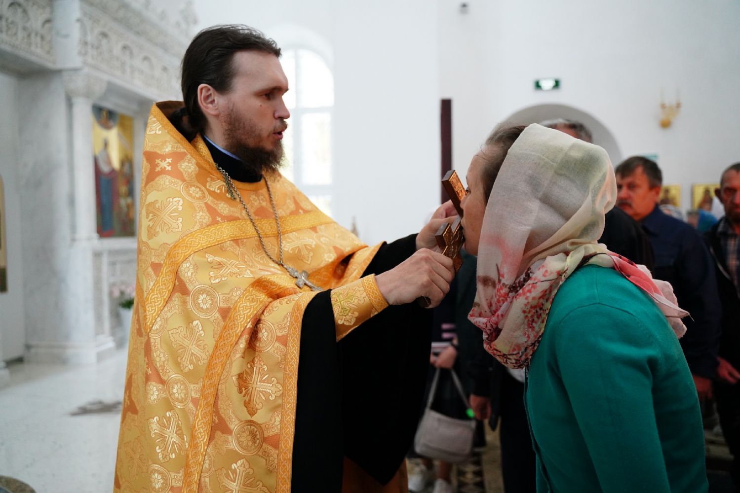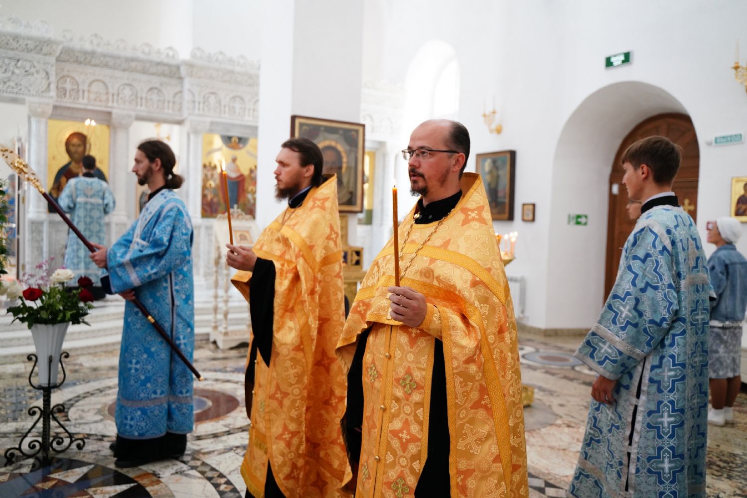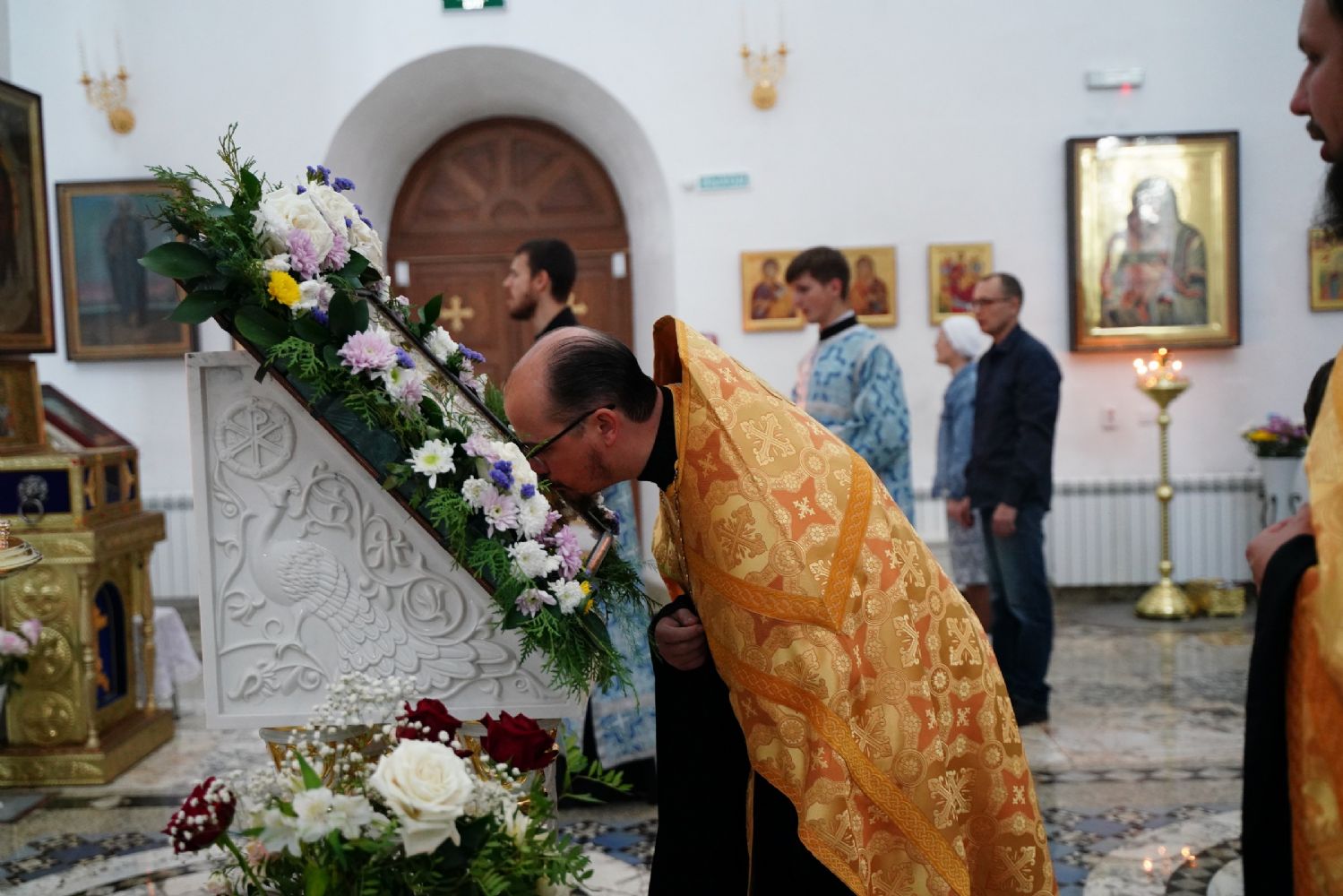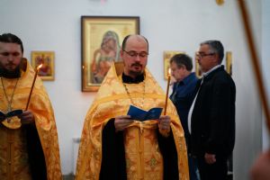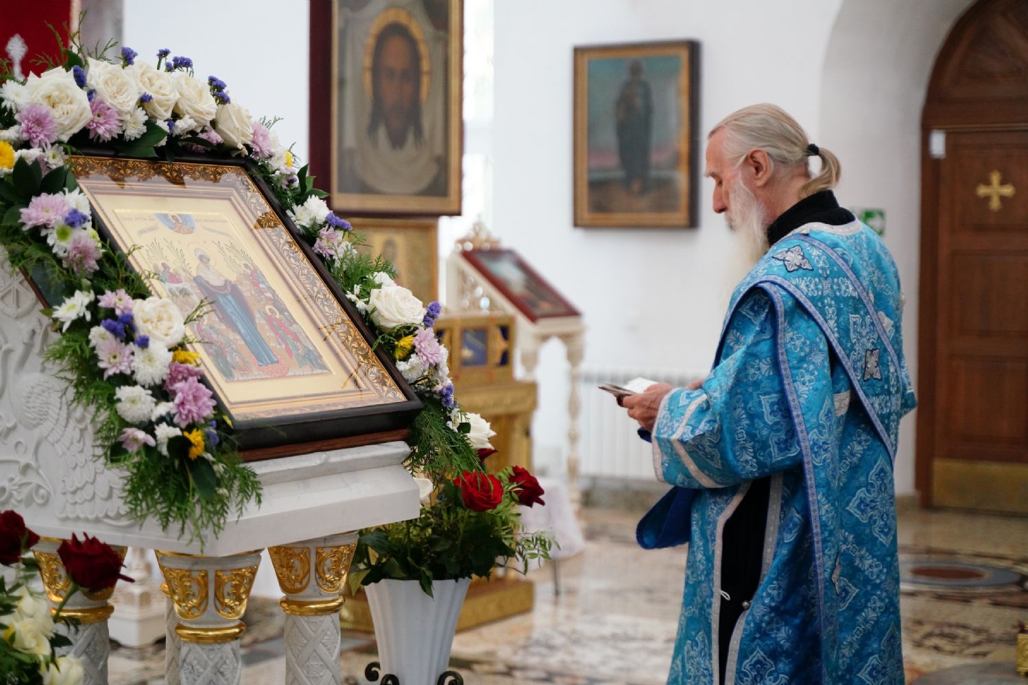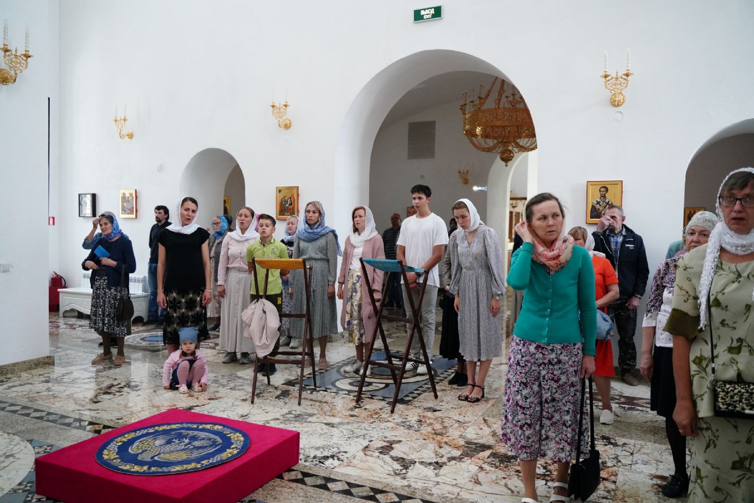 Владыке сослужили настоятель храма иерей Алексии Михеев, клирики храма иереи Игорь Коваль, Димитрий Лукьянов и протодиакон Михаил Козловский. Песнопения исполнял хор храма под управлением Александры Ивановой.