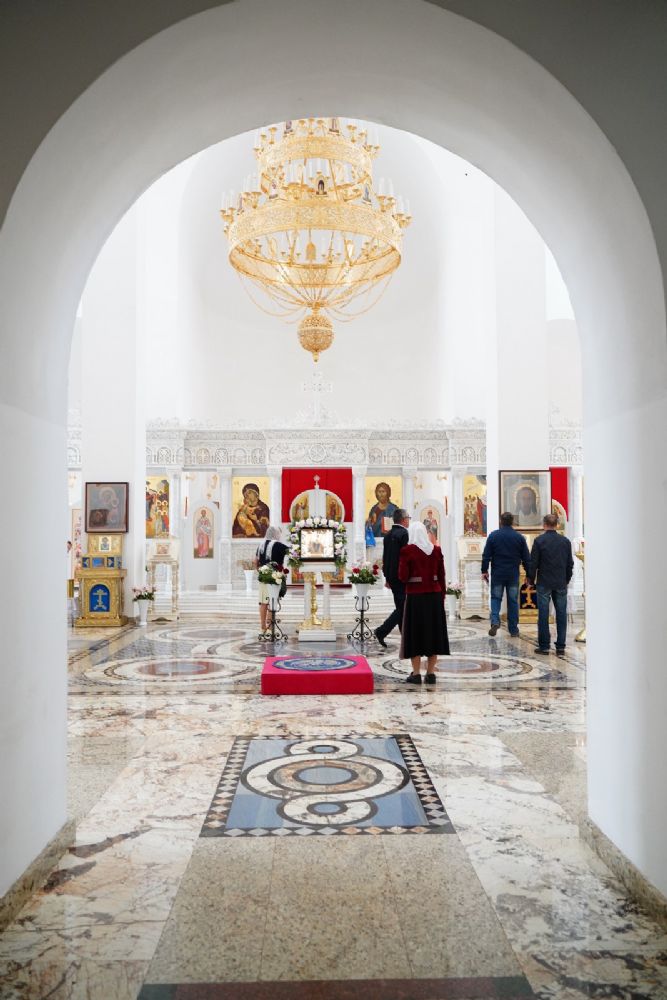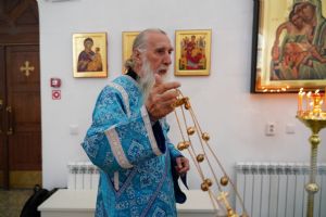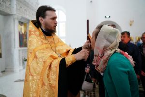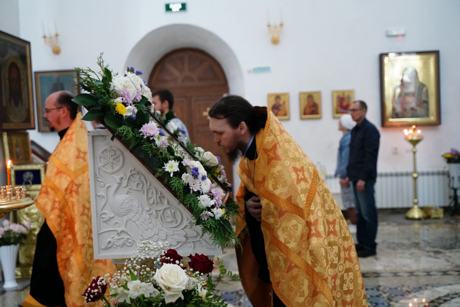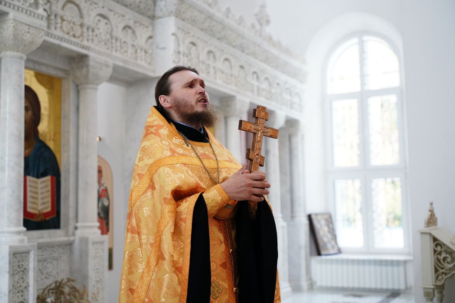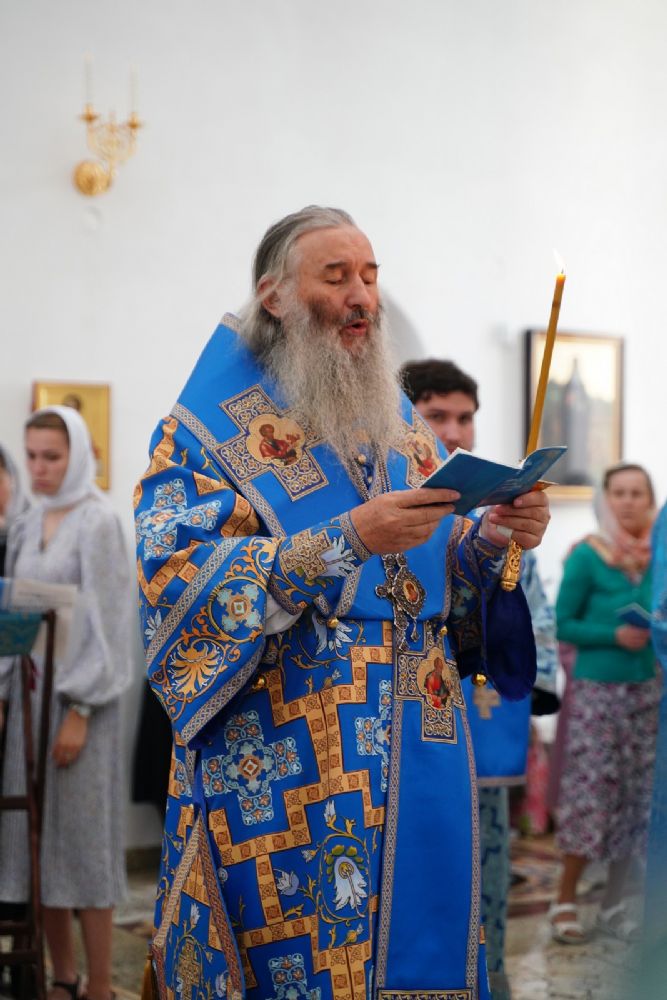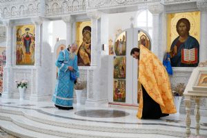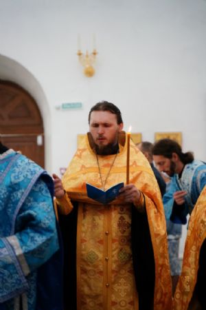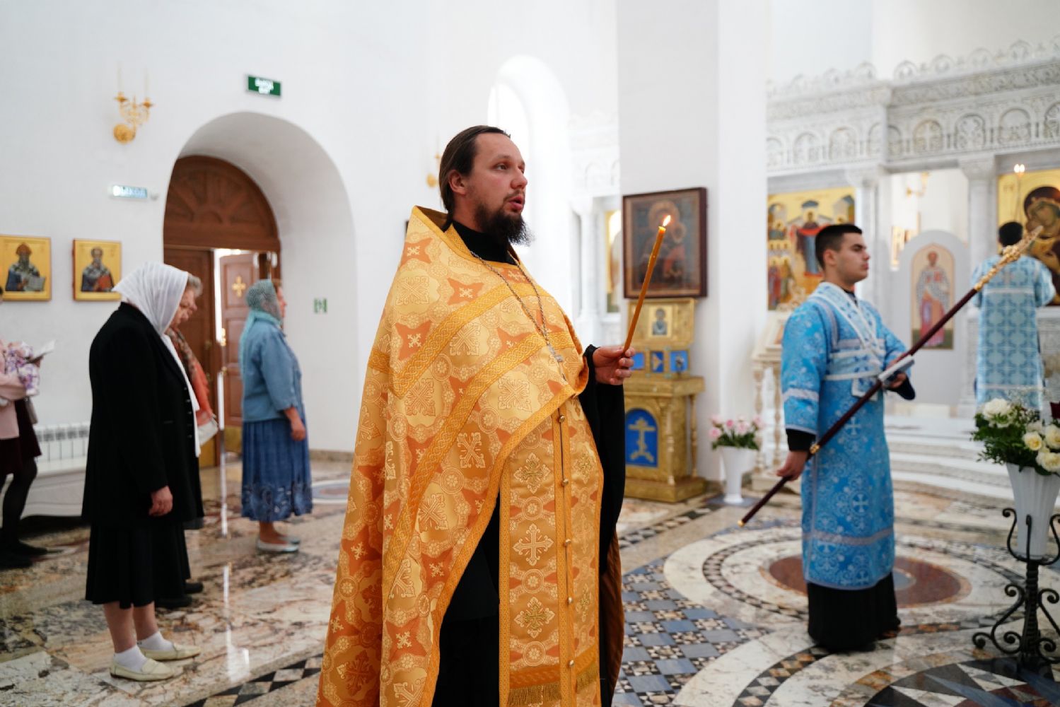 Владыке сослужили настоятель храма иерей Алексии Михеев, клирики храма иереи Игорь Коваль, Димитрий Лукьянов и протодиакон Михаил Козловский. Песнопения исполнял хор храма под управлением Александры Ивановой.