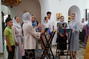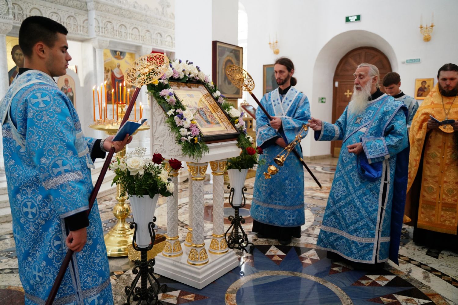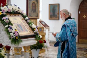 По сложившейся традиции акафист, прославляя Пресвятую Богородицу, вместе со священством и хором пели все прихожане.