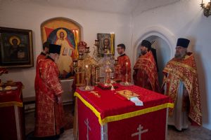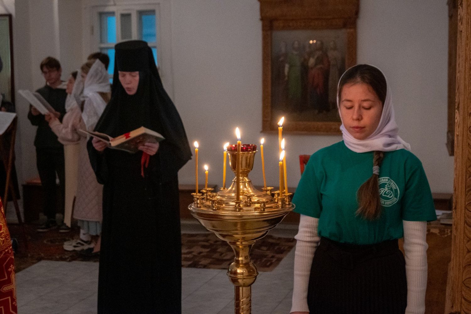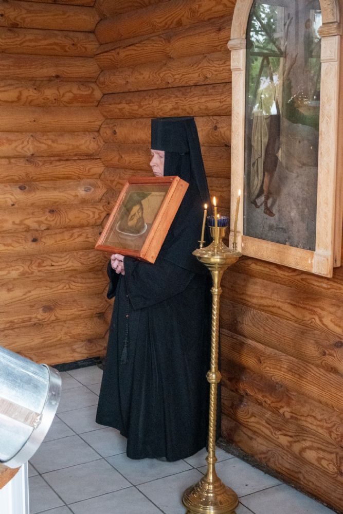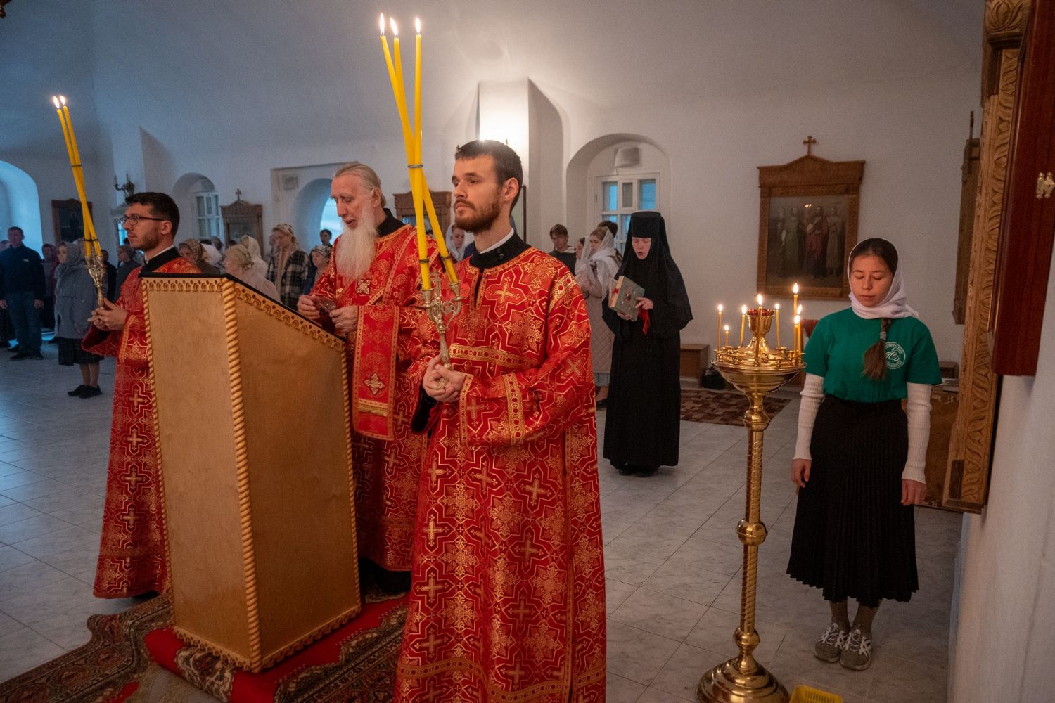 Перед причащением мирян отец Серафим зачитал обращение Партиарха Московского и Всея Руси Кирилла по случаю Всероссийского дня трезвости. После Литургии прошел крестный ход по территории монастыря к часовне Иоанна Предтечи, где был совершен водосвятный молебен.