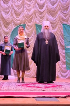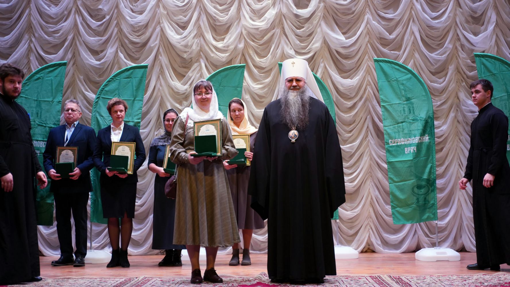 Затем состоялась церемония награждения победителей конкурса «Серафимовский врач». Награды победителям вручил митрополит Георгий.