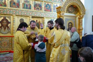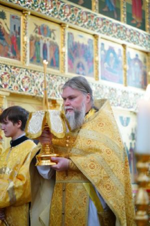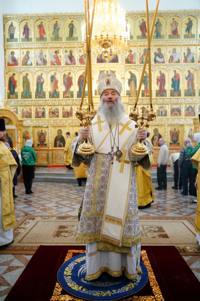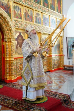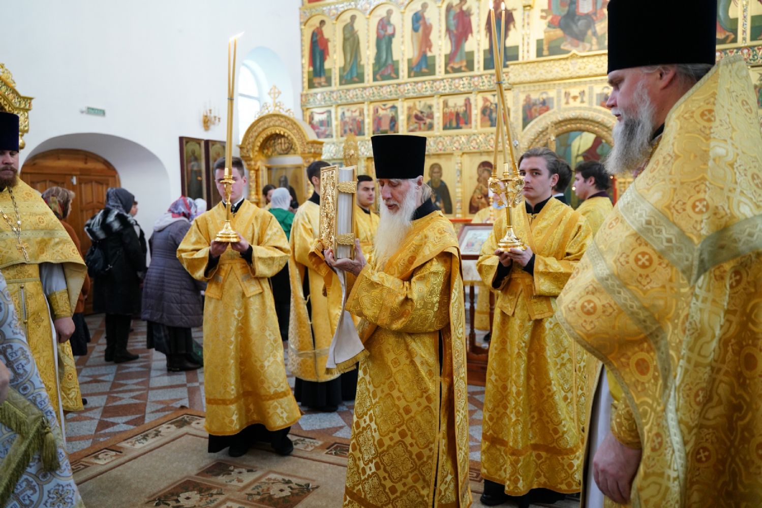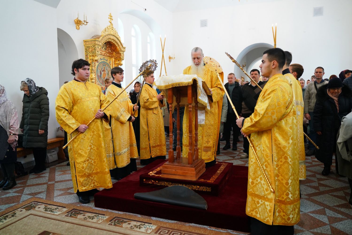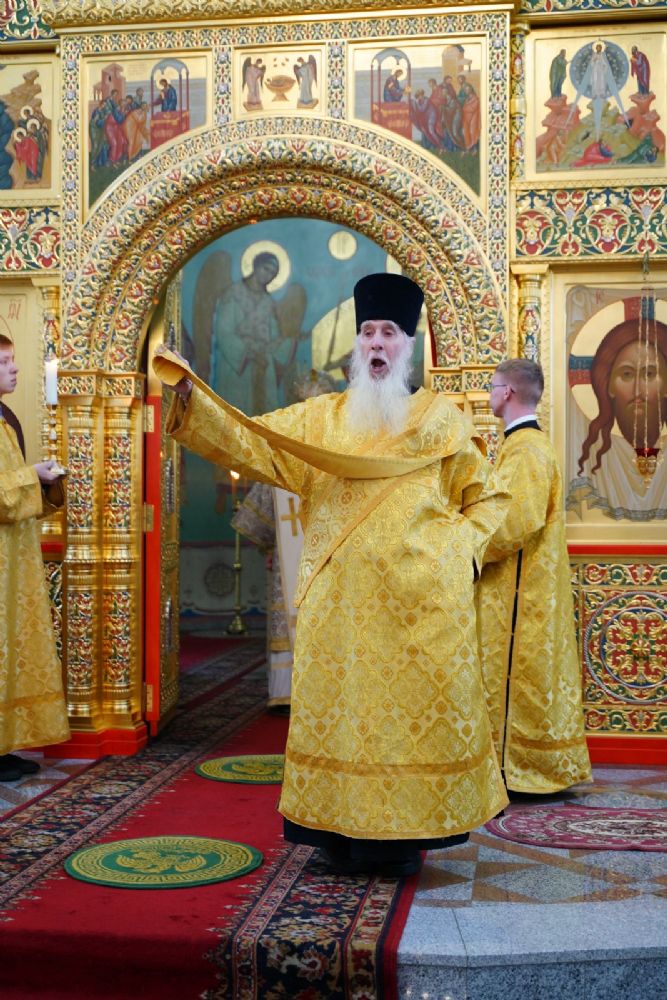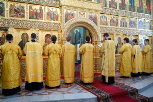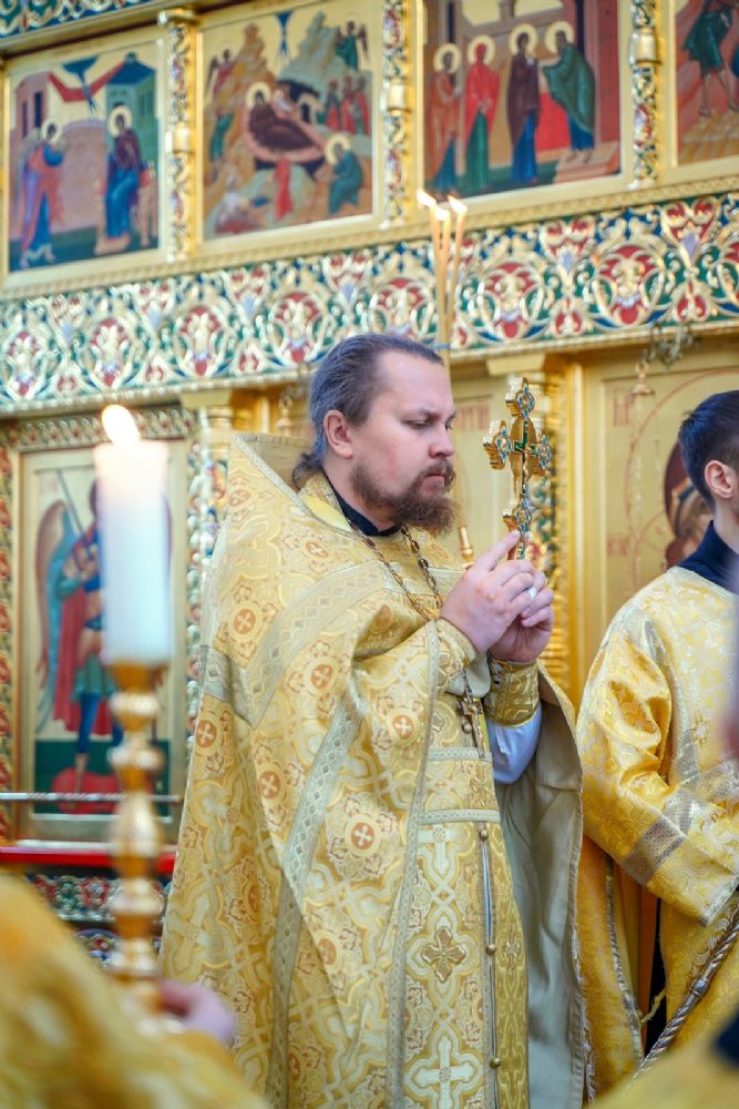 Его Высокопреосвященству сослужили настоятель храма протоиерей Александр Бачурин, клирики храма иерей Константин Домрачев и диакон Алексий Ершов, а также протодиакон Михаил Козловский. Пел хор храма под управлением регента Елены Умрихиной.