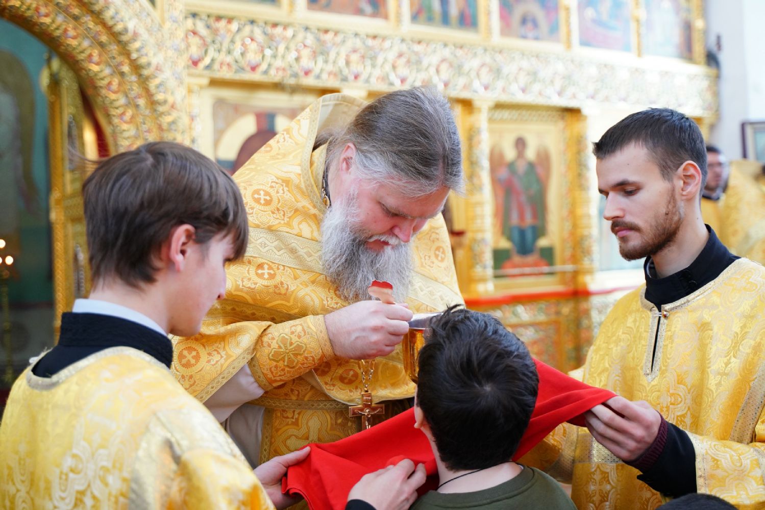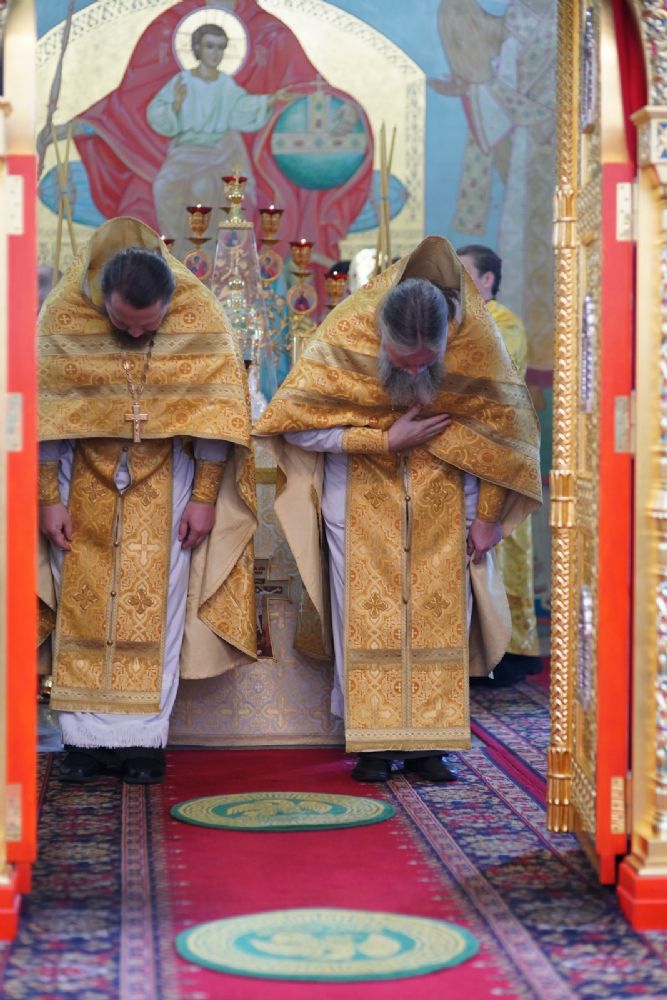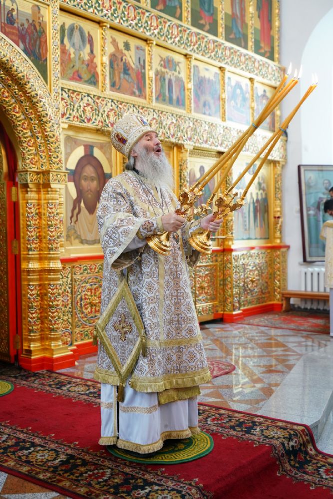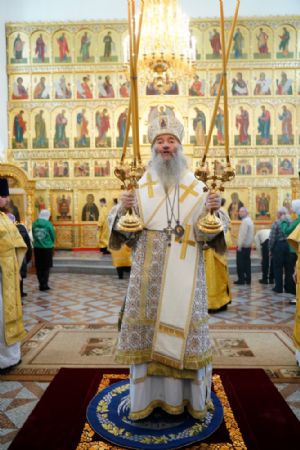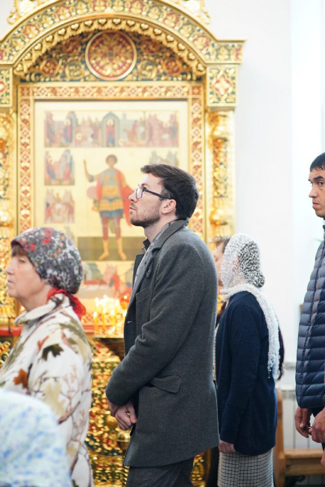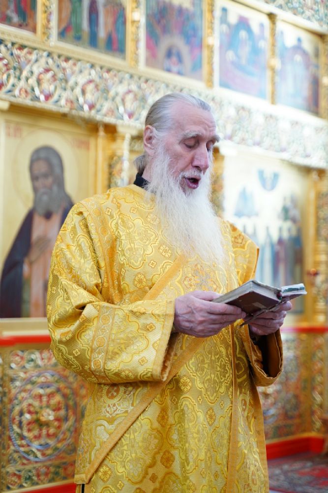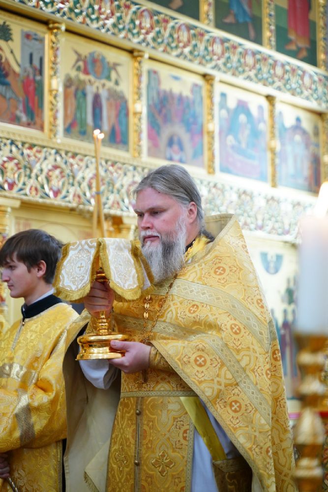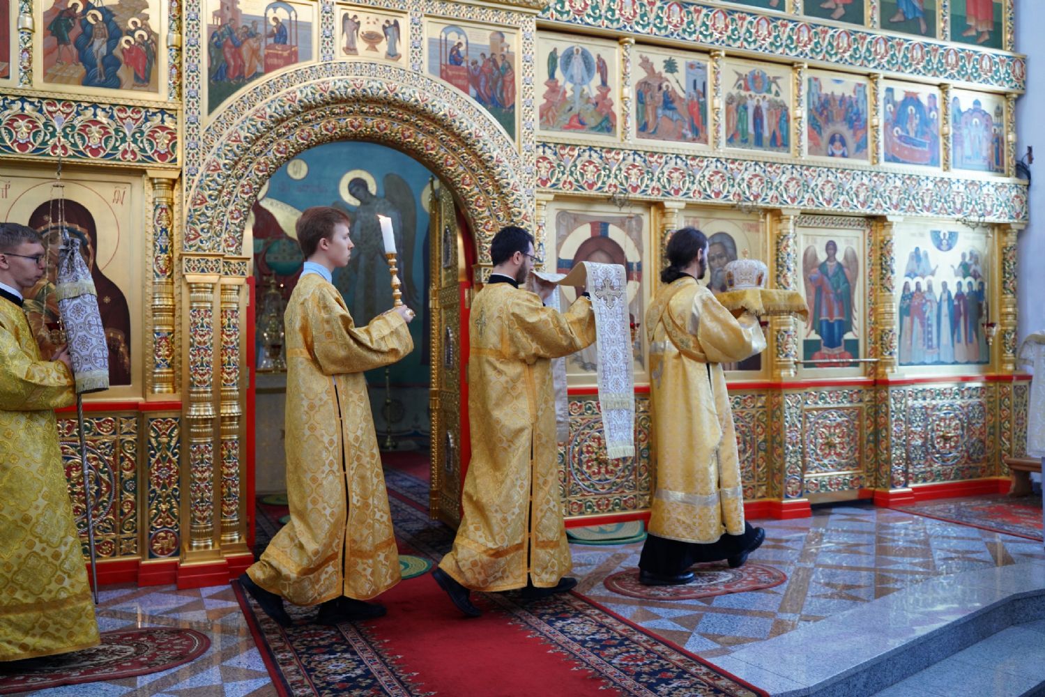 Его Высокопреосвященству сослужили настоятель храма протоиерей Александр Бачурин, клирики храма иерей Константин Домрачев и диакон Алексий Ершов, а также протодиакон Михаил Козловский. Пел хор храма под управлением регента Елены Умрихиной.