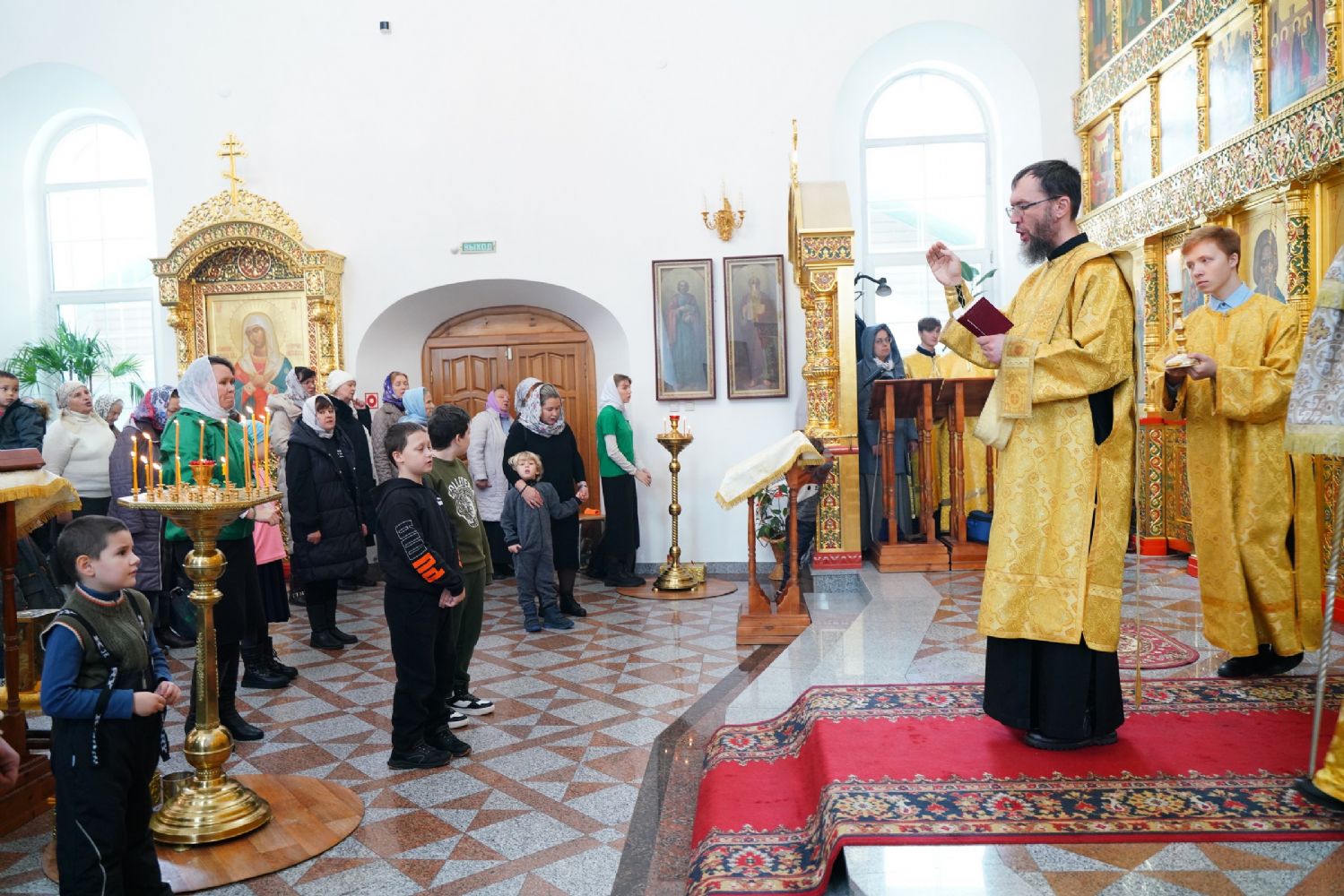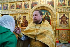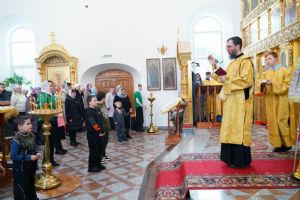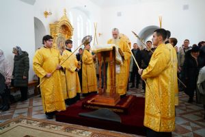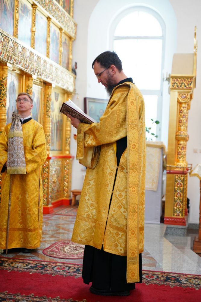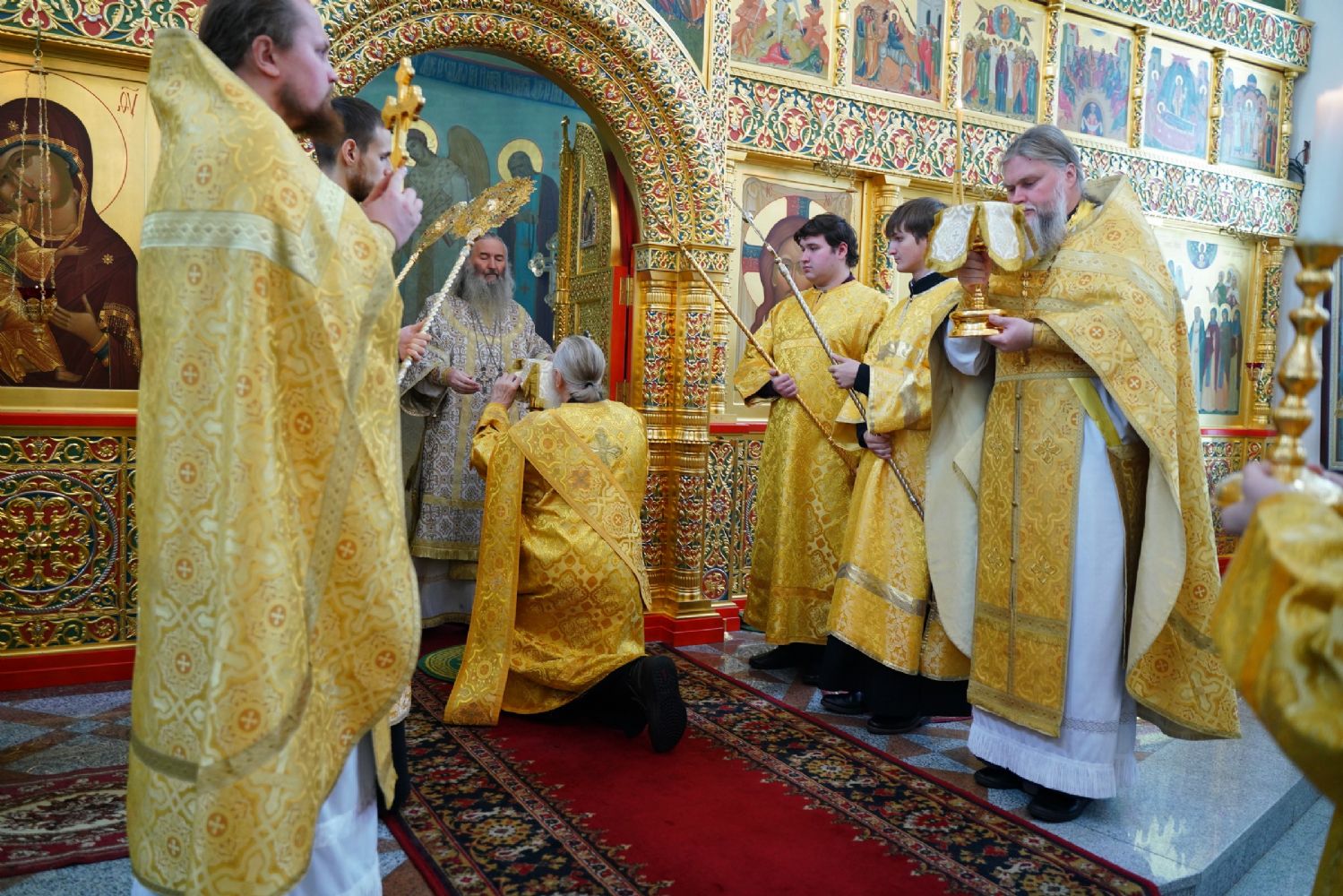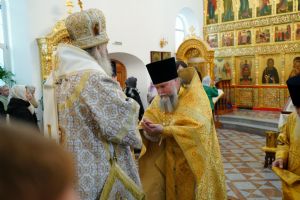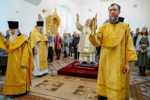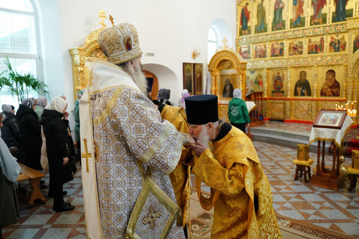 Его Высокопреосвященству сослужили настоятель храма протоиерей Александр Бачурин, клирики храма иерей Константин Домрачев и диакон Алексий Ершов, а также протодиакон Михаил Козловский. Пел хор храма под управлением регента Елены Умрихиной.