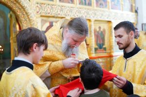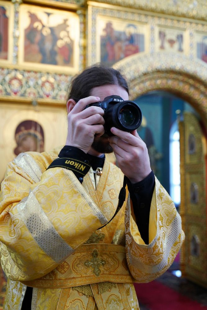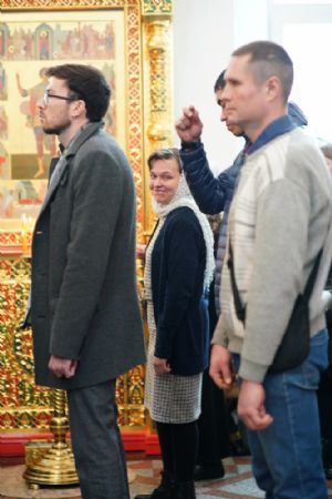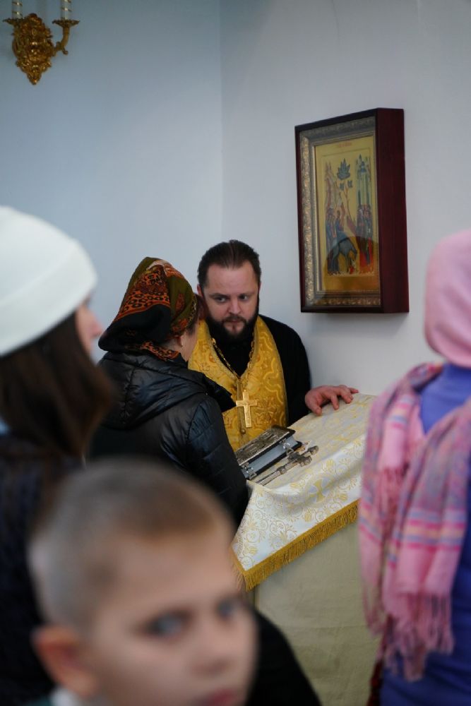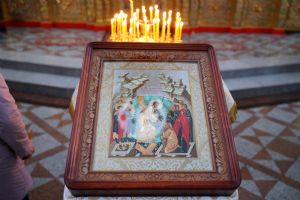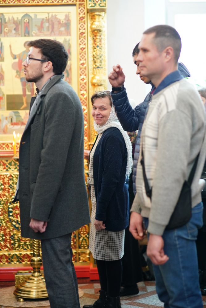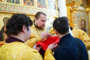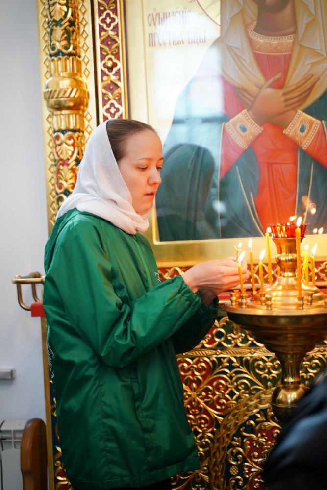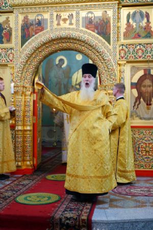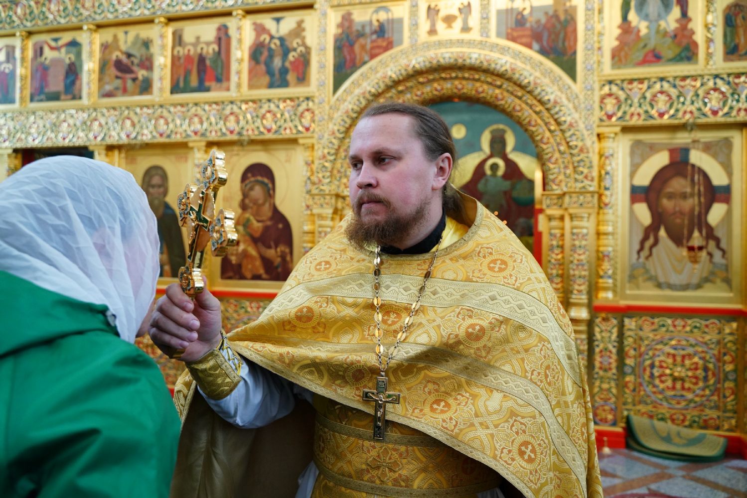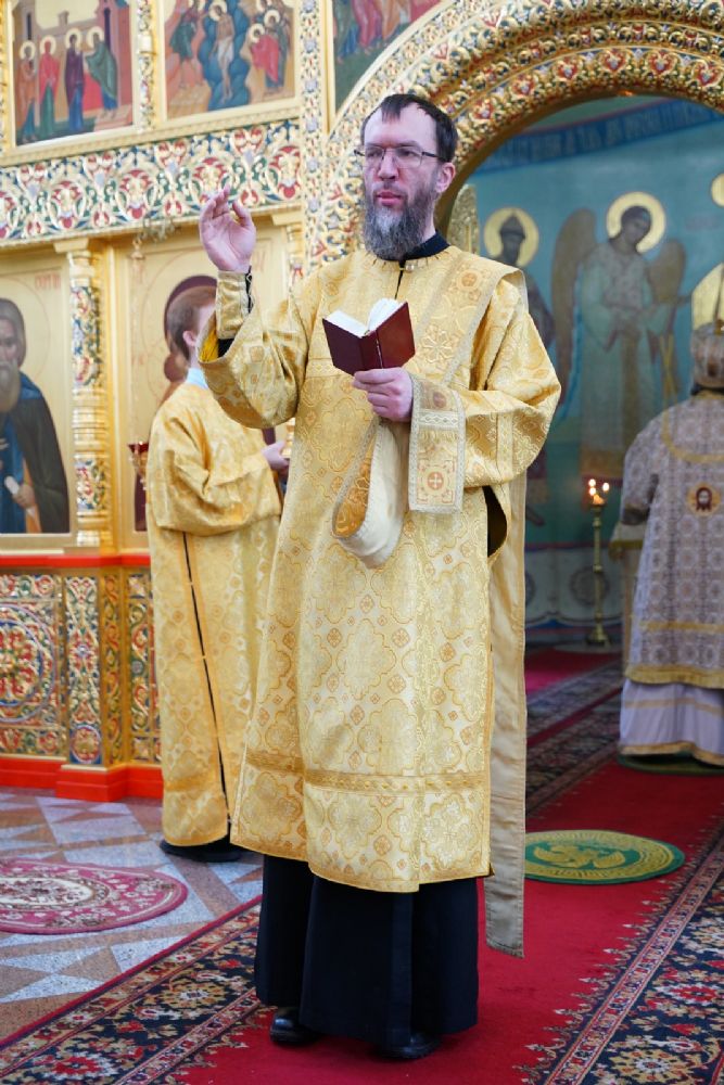 Его Высокопреосвященству сослужили настоятель храма протоиерей Александр Бачурин, клирики храма иерей Константин Домрачев и диакон Алексий Ершов, а также протодиакон Михаил Козловский. Пел хор храма под управлением регента Елены Умрихиной.