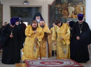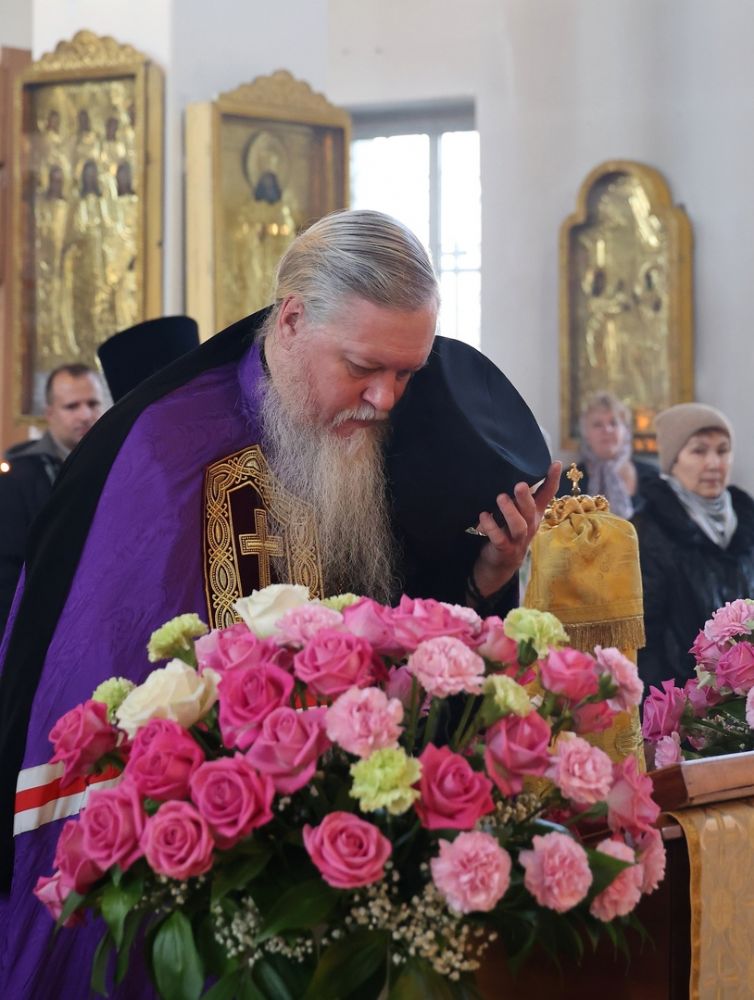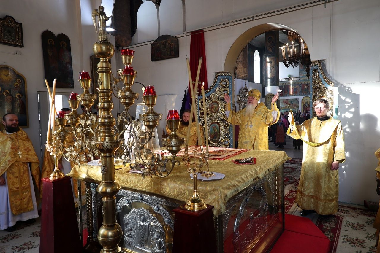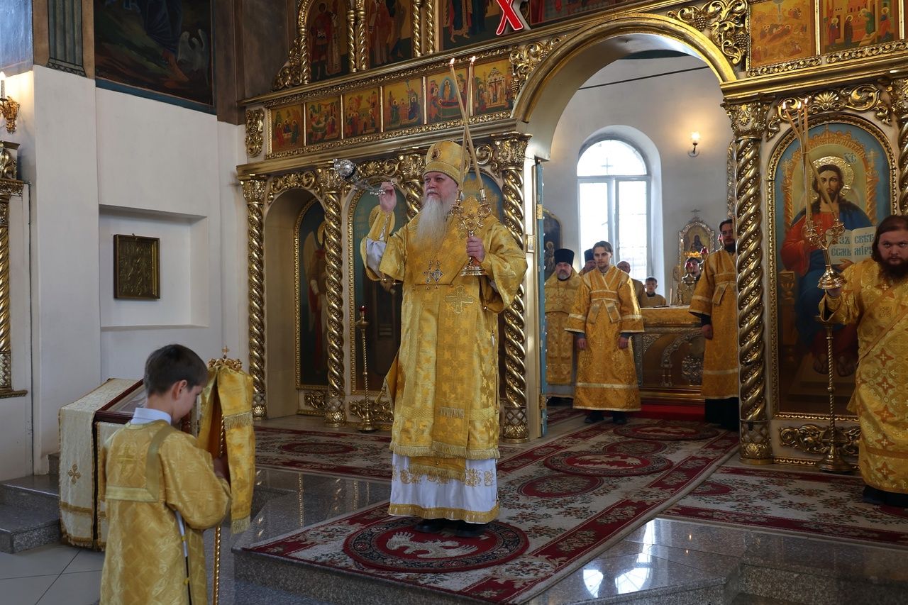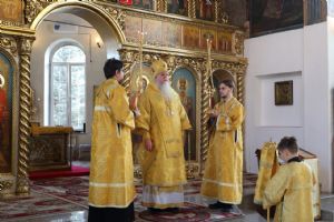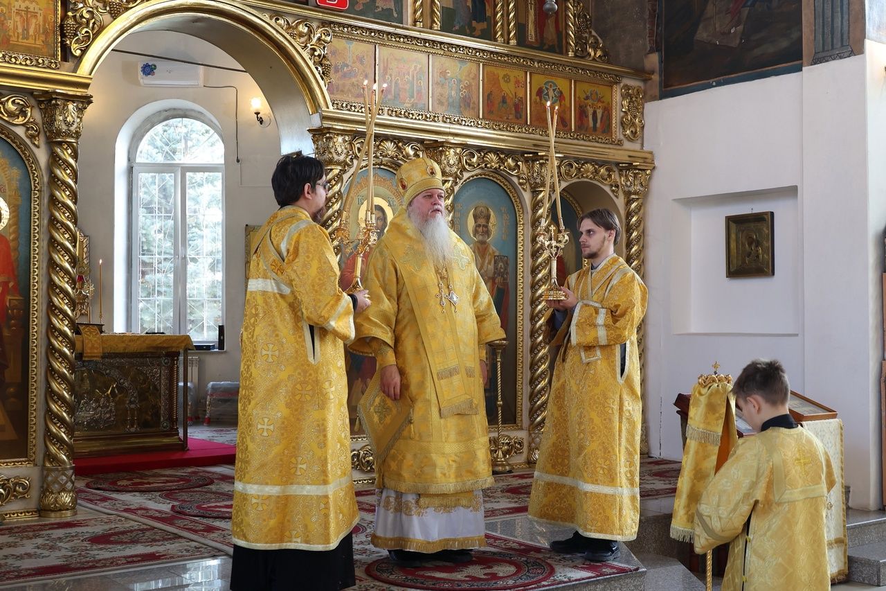 Владыке сослужили клирики собора, песнопения исполнял архиерейский хор.