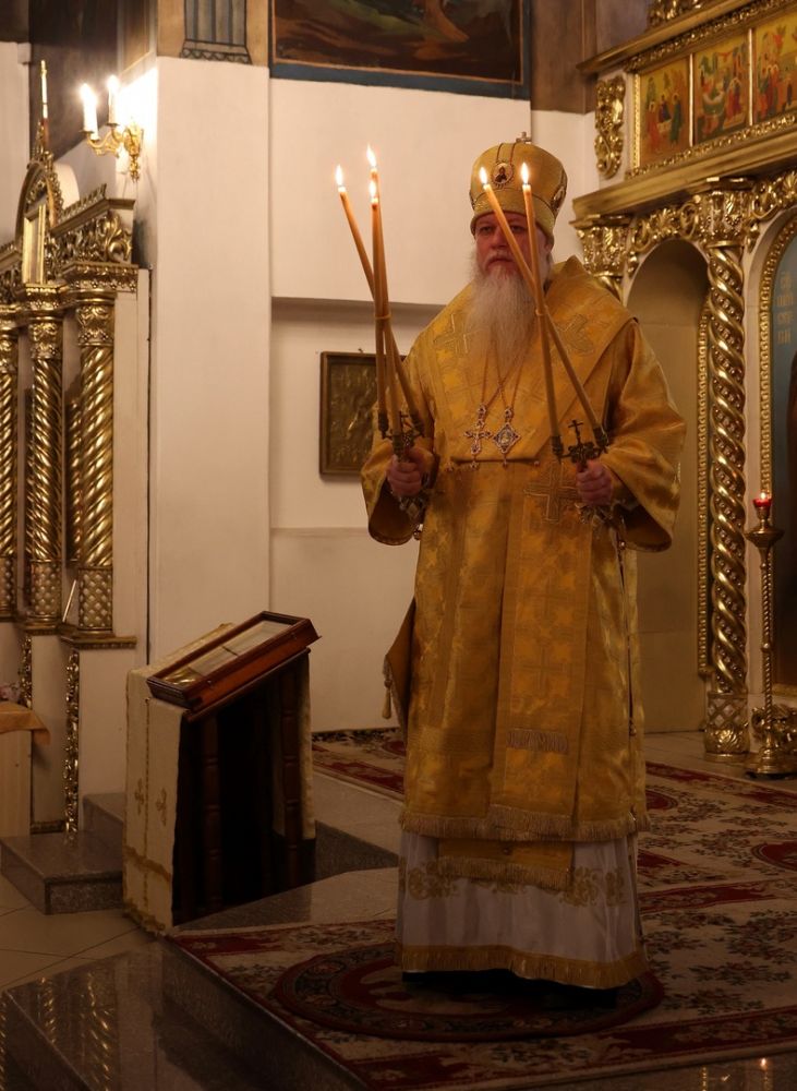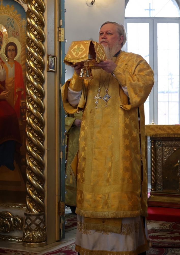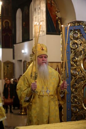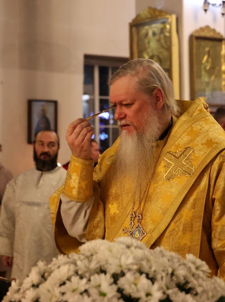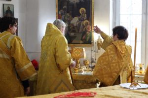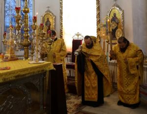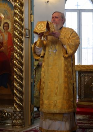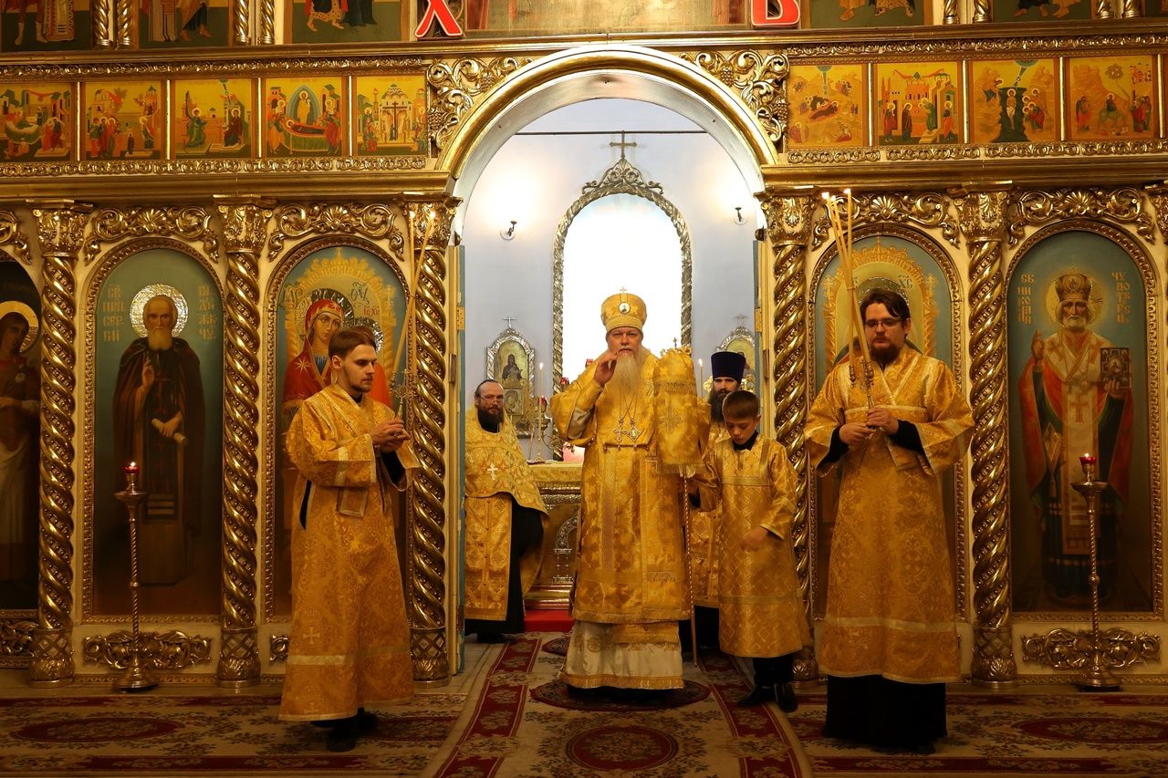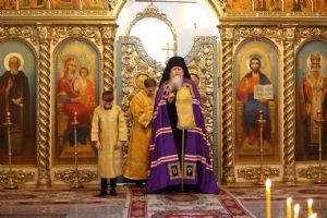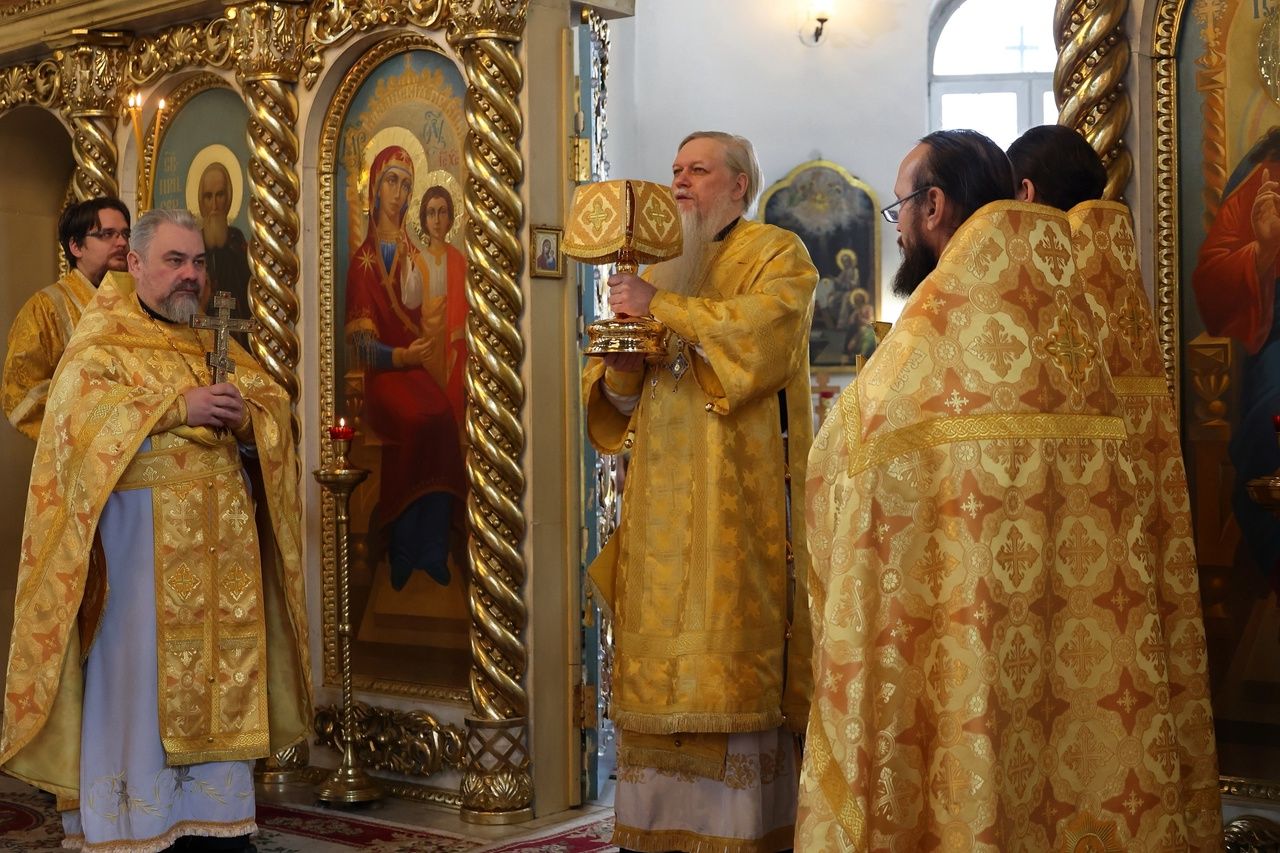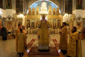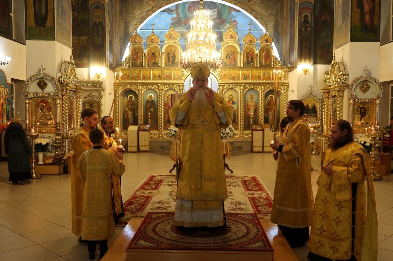 Его Преосвященству сослужили клирики собора, песнопения исполнял архиерейский хор под управлением Любови Михеевой.