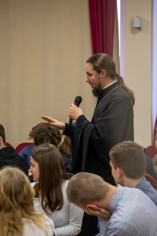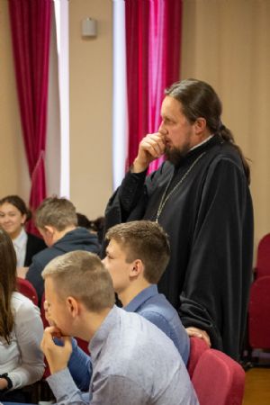 В этот раз организаторами диспут-клуба была выбрана следующая тема беседы: «Любовь - путь к самопознанию». В диалоге с ведущими – иереем Игорем Ковалем и Анной Владимировной Артамоновой школьники рассуждали о том, какие бывают отношения? для чего они нужны? отношения между парнем и девушкой – это удовольствие vs любовь?