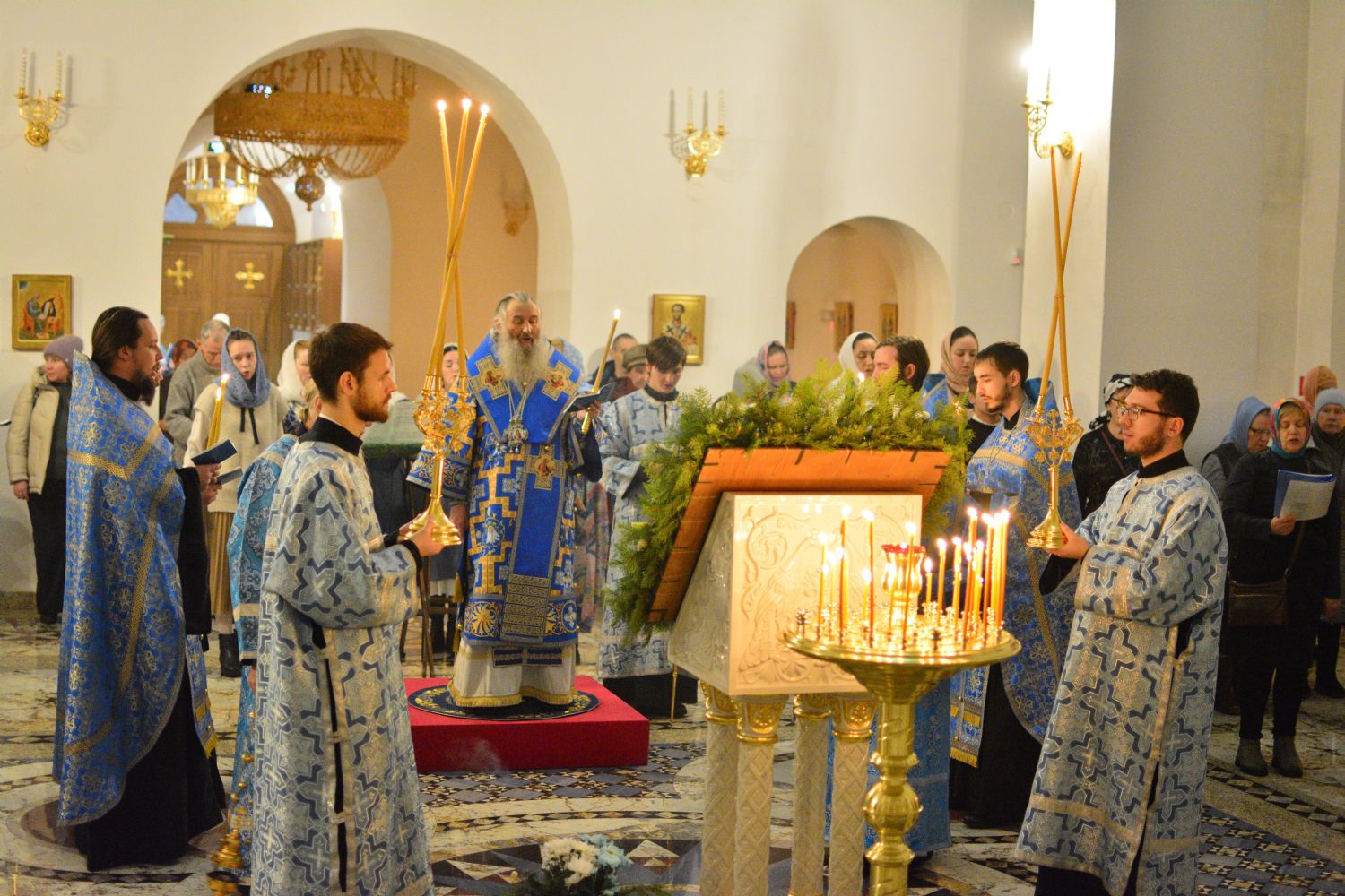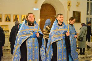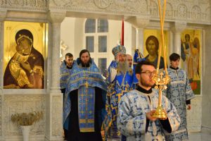 Владыке сослужили настоятель храма иерей Алексий Михеев, клирики храма иереи Алексий Кирюшкин, Игорь Коваль и Сергий Пуртов, диакон Олег Михайлов, а также протодиакон Михаил Козловский. Песнопения исполнял хор храма под управлением Надежды Пуртовой.
