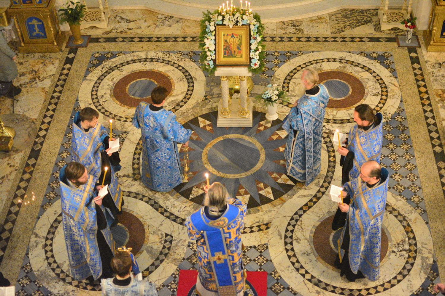 Традиционно, акафист, прославляя Пресвятую Богородицу, вместе со священством и хором пели все прихожане.