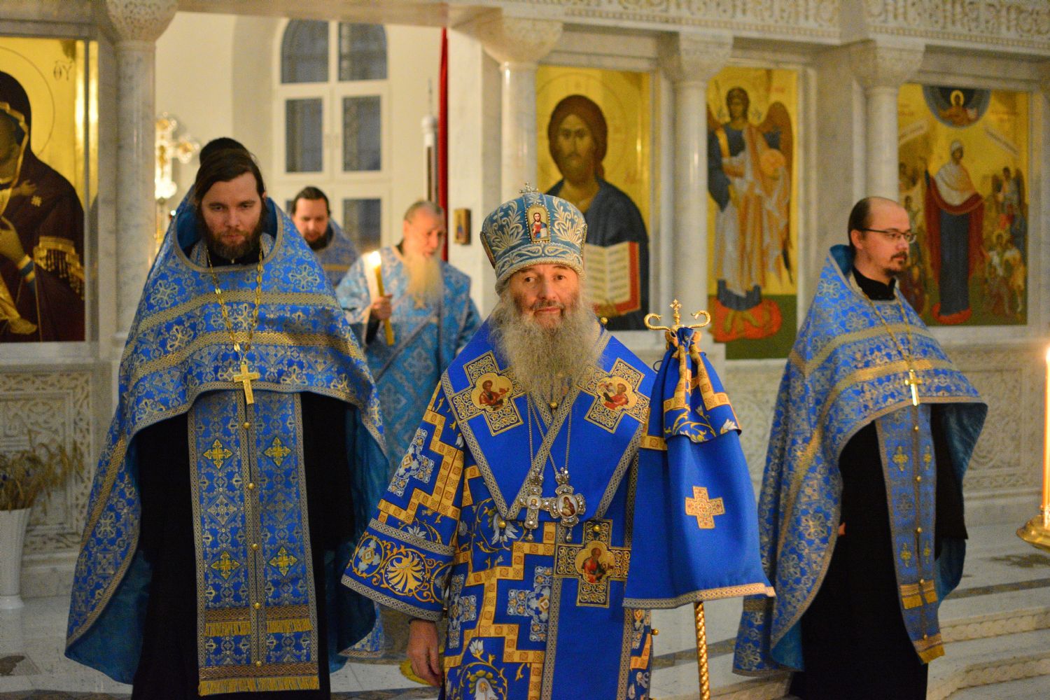 3 ноября вечером, накануне праздника Казанской иконы Божией Матери, митрополит Йошкар-Олинский и Марийский Иоанн возглавил всенощное бдение в Вознесенском соборе г. Йошкар-Олы.