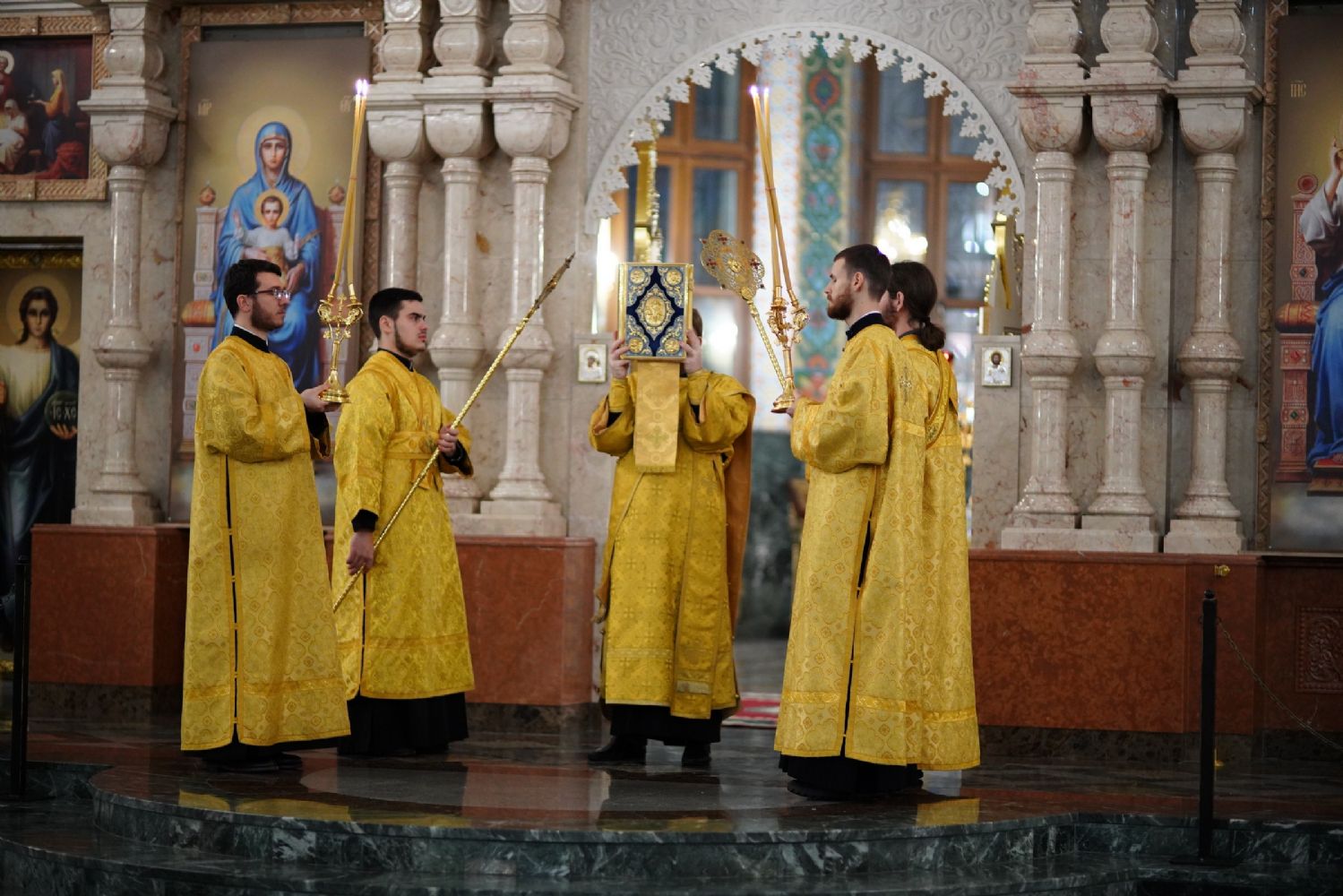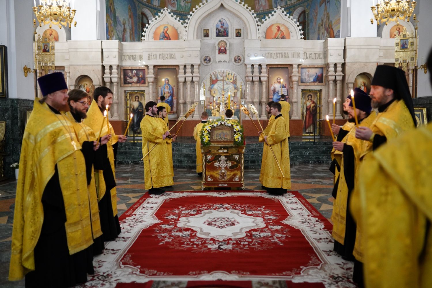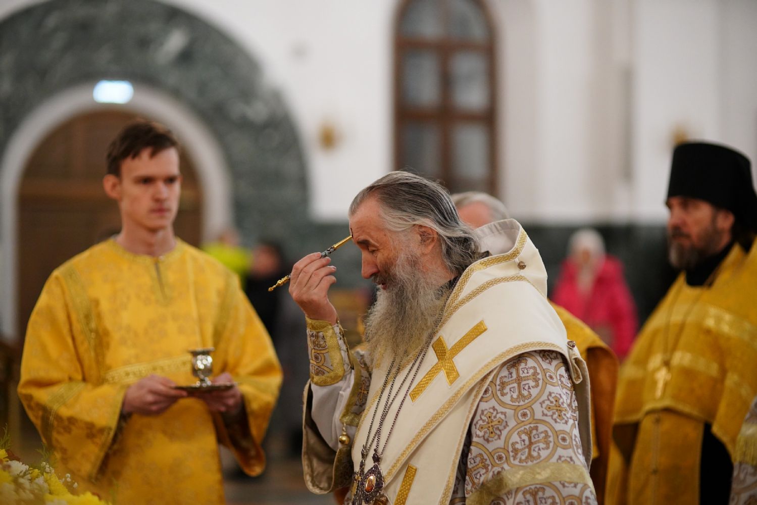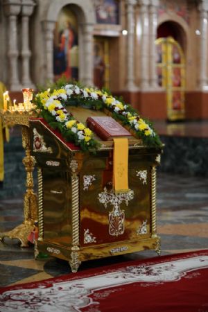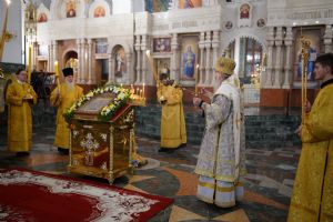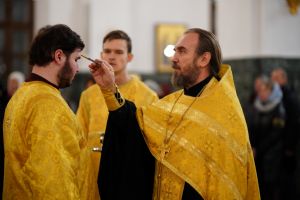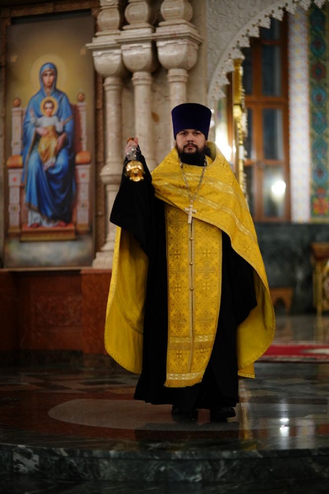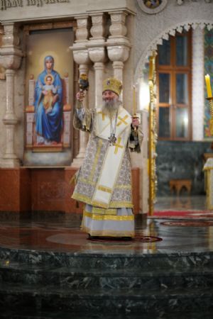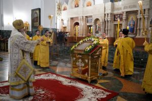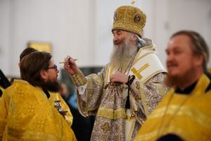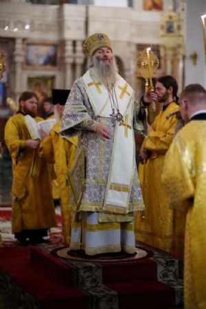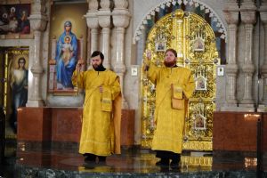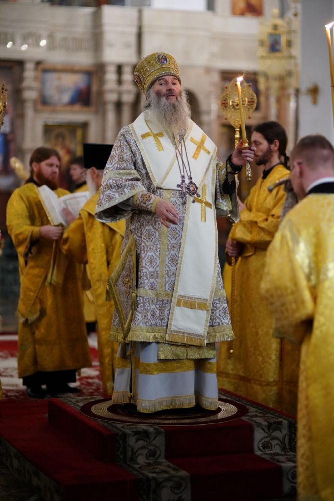 Его Высокопреосвященству сослужили секретарь Йошкар-Олинского епархиального управления иеромонах Серафим (Пасанаев), ключарь кафедрального собора протоиерей Сергий Поглазов, клирики собора иереи Никифор Захаров, Евгений Самойлов, Александр Староверов, Иоанн Милютин, диаконы Андрей Дружинин и Артемий Бобоч, а также протодиакон Михаил Козловский. Песнопения исполнял детско-юношеский хор «Благовест» под управлением Софии Андреевой.