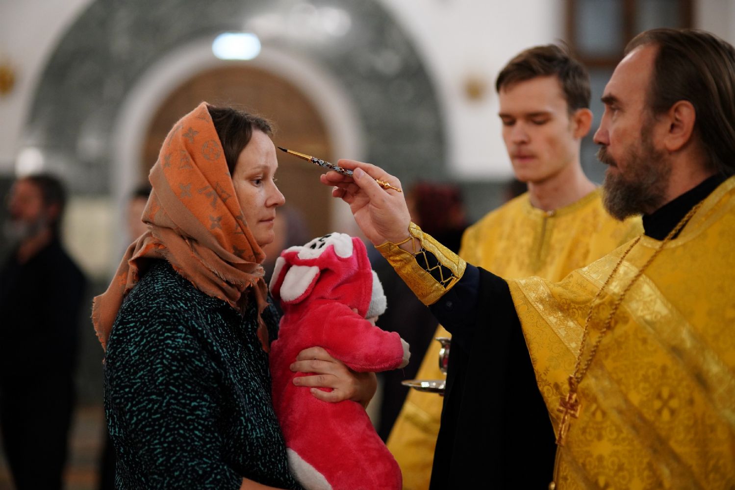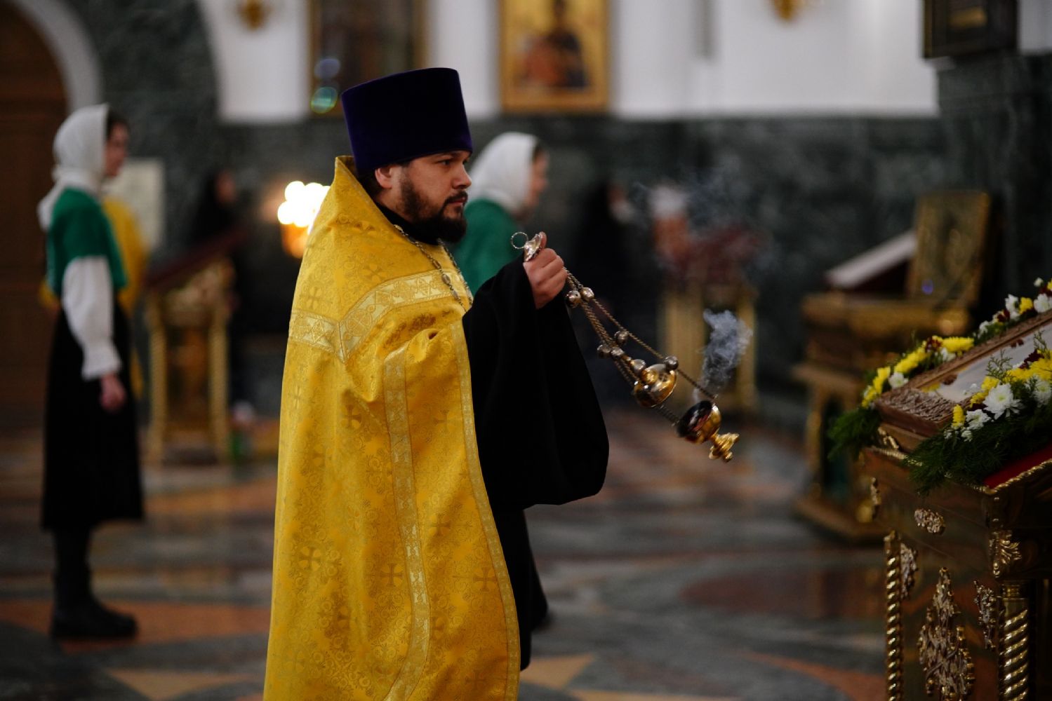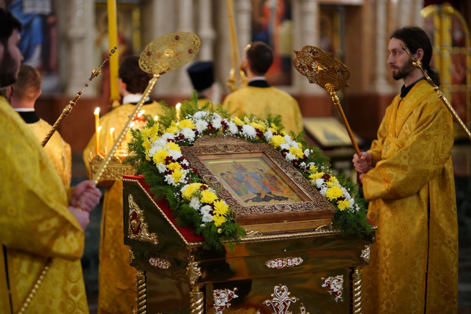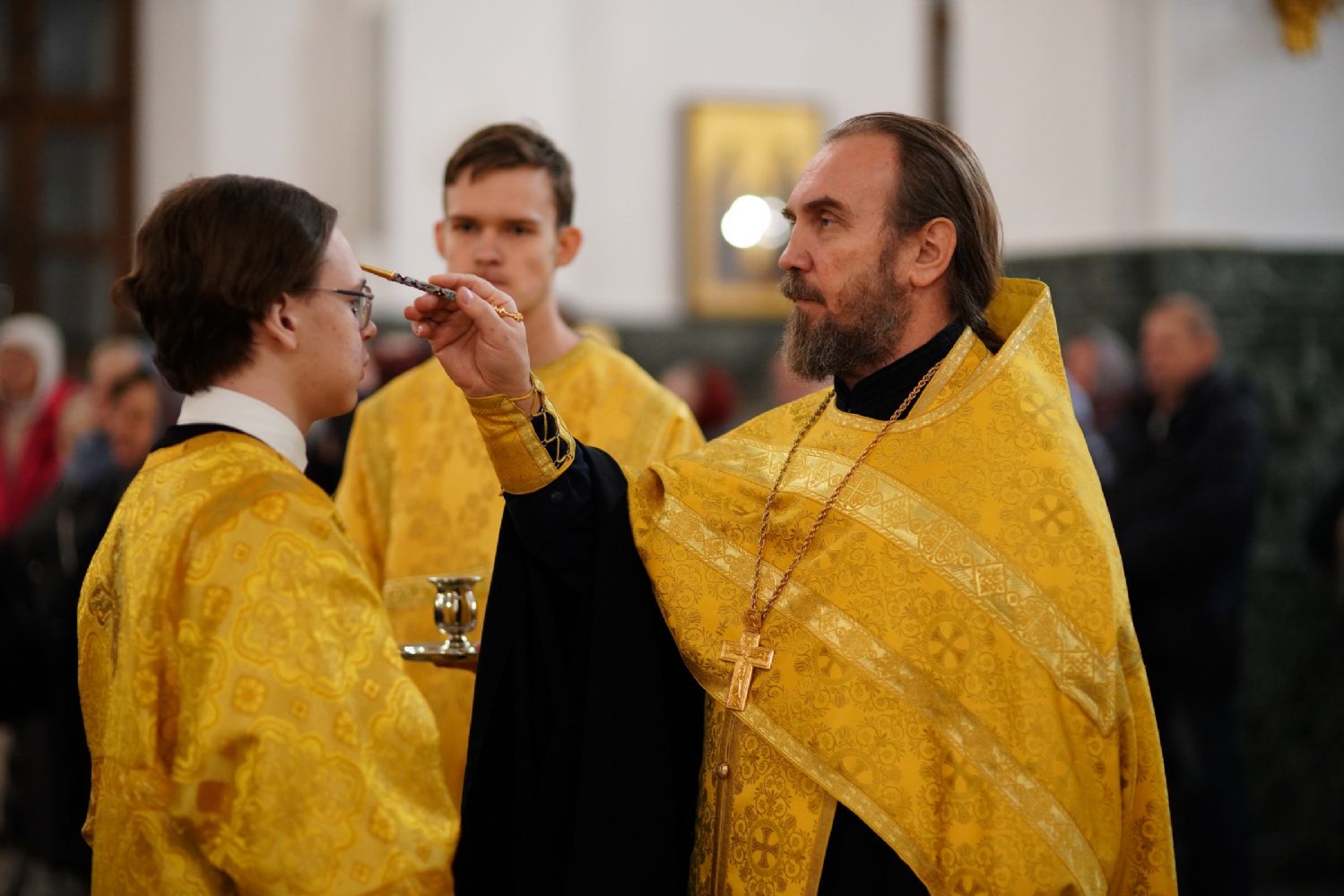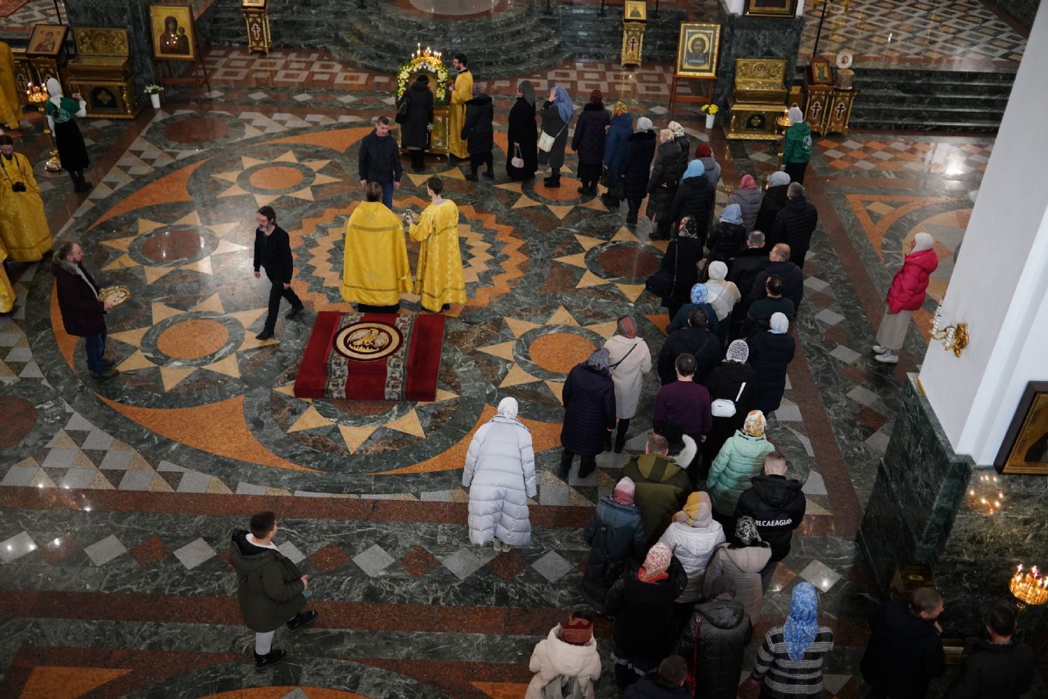 Его Высокопреосвященству сослужили секретарь Йошкар-Олинского епархиального управления иеромонах Серафим (Пасанаев), ключарь кафедрального собора протоиерей Сергий Поглазов, клирики собора иереи Никифор Захаров, Евгений Самойлов, Александр Староверов, Иоанн Милютин, диаконы Андрей Дружинин и Артемий Бобоч, а также протодиакон Михаил Козловский. Песнопения исполнял детско-юношеский хор «Благовест» под управлением Софии Андреевой.