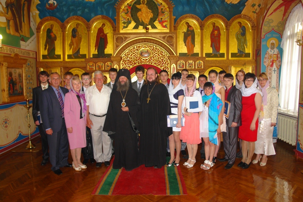 В конце молебна архиепископ Иоанн обратился к присутствовавшим с проповедью. Владыка процитировал апостола Иакова, который говорит, что кто научился в скорби радоваться, приобретет терпение, кто приобрел терпение познает что такое вера православная… Владыка, обращаясь к выпускникам, пожелал, чтобы печаль и уныние не касалось их сердец.