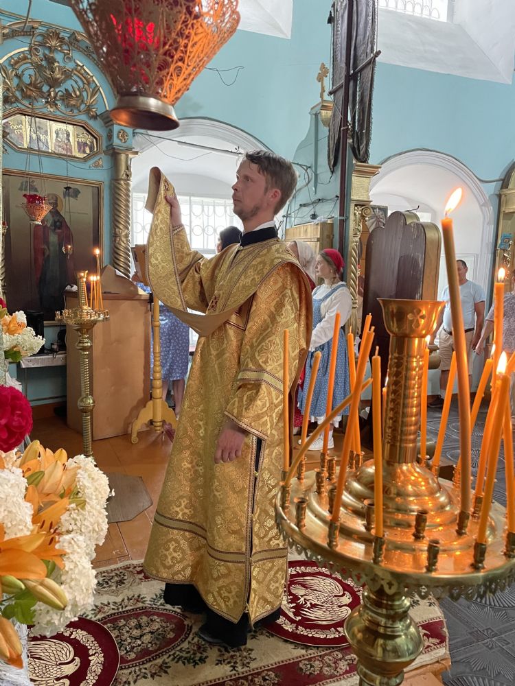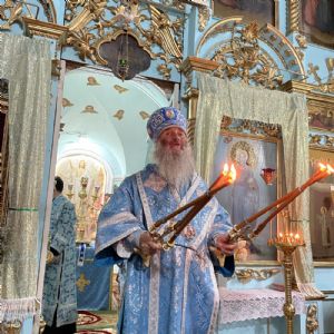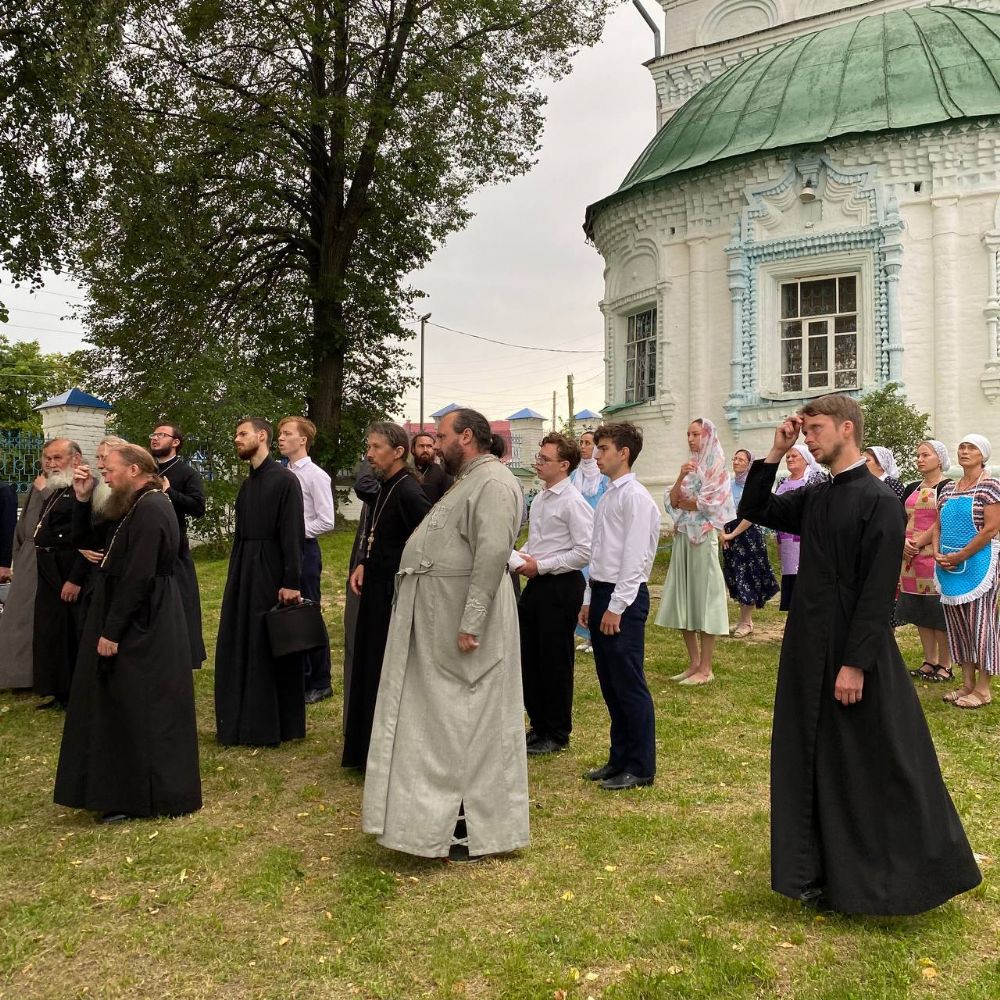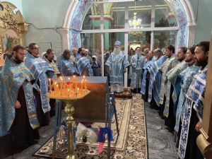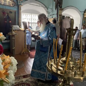 Митрополит Иоанн возглавил в храме праздничное всенощное бдение. Архипастырю сослужили благочинный Козьмодемьянского церковного округа протоиерей Алексий Сущев, настоятель Владимирского храма иерей Алексий Васюткин и духовенство Йошкар-Олинской епархии. Часть богослужебных песнопений и чтений исполнялась на марийском языке.