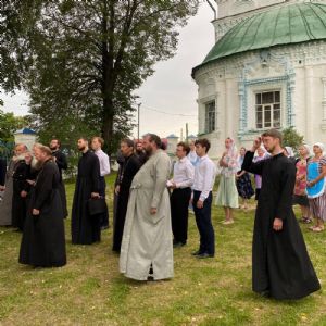 В храме Владимирской иконы Божией Матери крестоходцев, пришедших из Козьмодемьянска, встретил митрополит Йошкар-Олинский и Марийский Иоанн с духовенством и прихожанами.