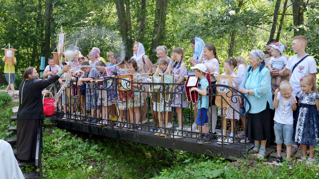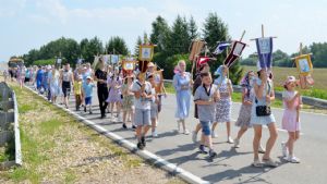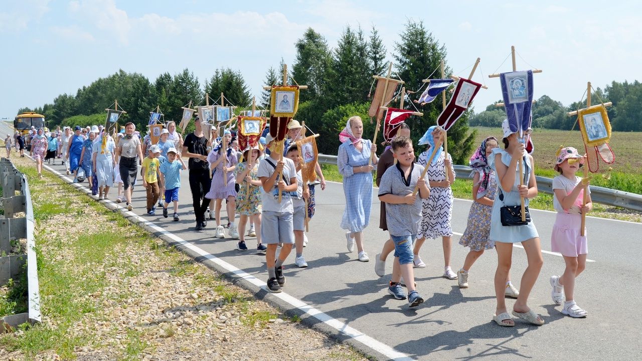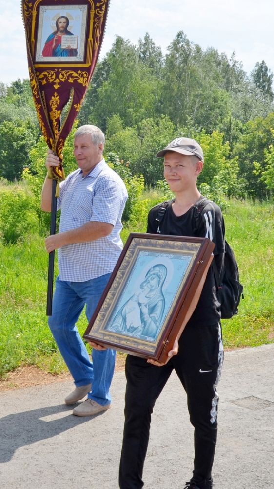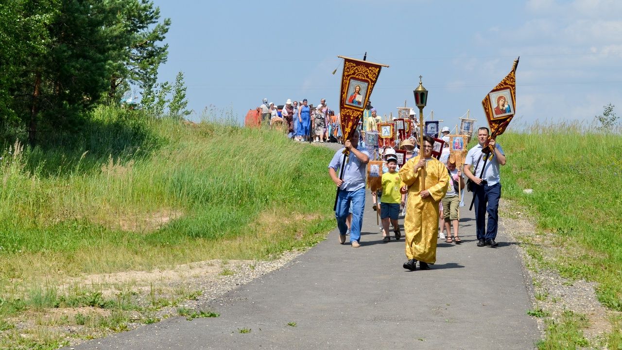 Основная масса крестоходцев – это дети из Кучки и Оршанки, но были также семьи из Йошкар-Олы. Ребята шли с хоругвями, весь путь сопровождали молитвою. На святом источнике был совершен чин освящения воды с окроплением всех участников крестного хода.
