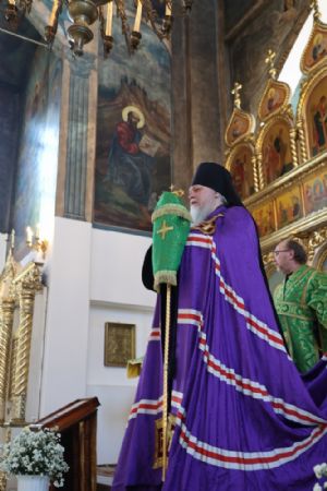 Его Преосвященству сослужили клирики собора иерей Сергий Першаков, диакон Иоанн Захаров и диакон Герман Михайлов. Песнопения исполнял хор под руководством Елены Васильевой.