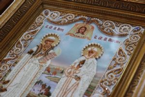 По окончании Литургии священнослужители совершили славление и вознесли молитву перед иконой святых благоверных князя Петра и княгини Февронии.