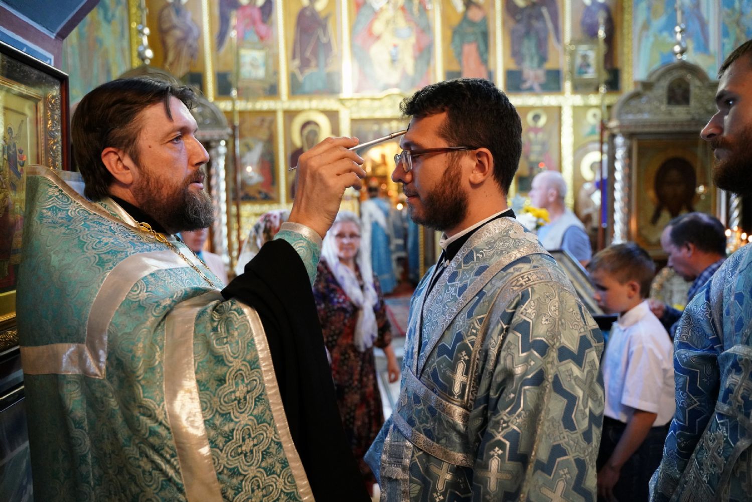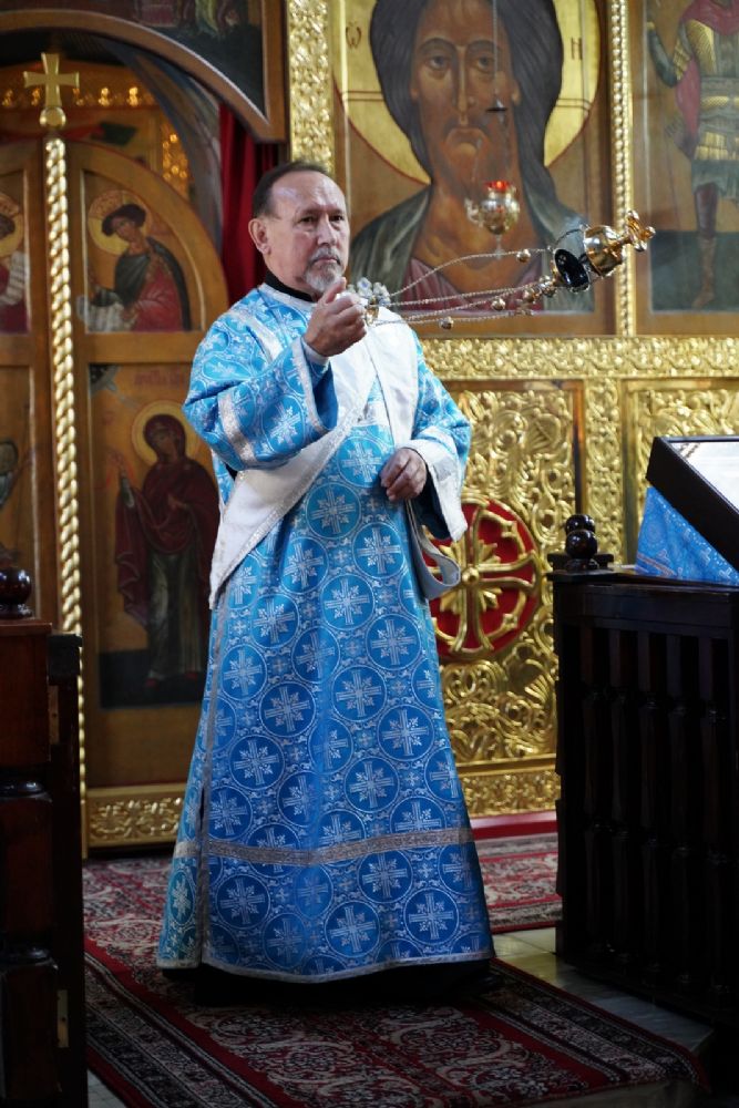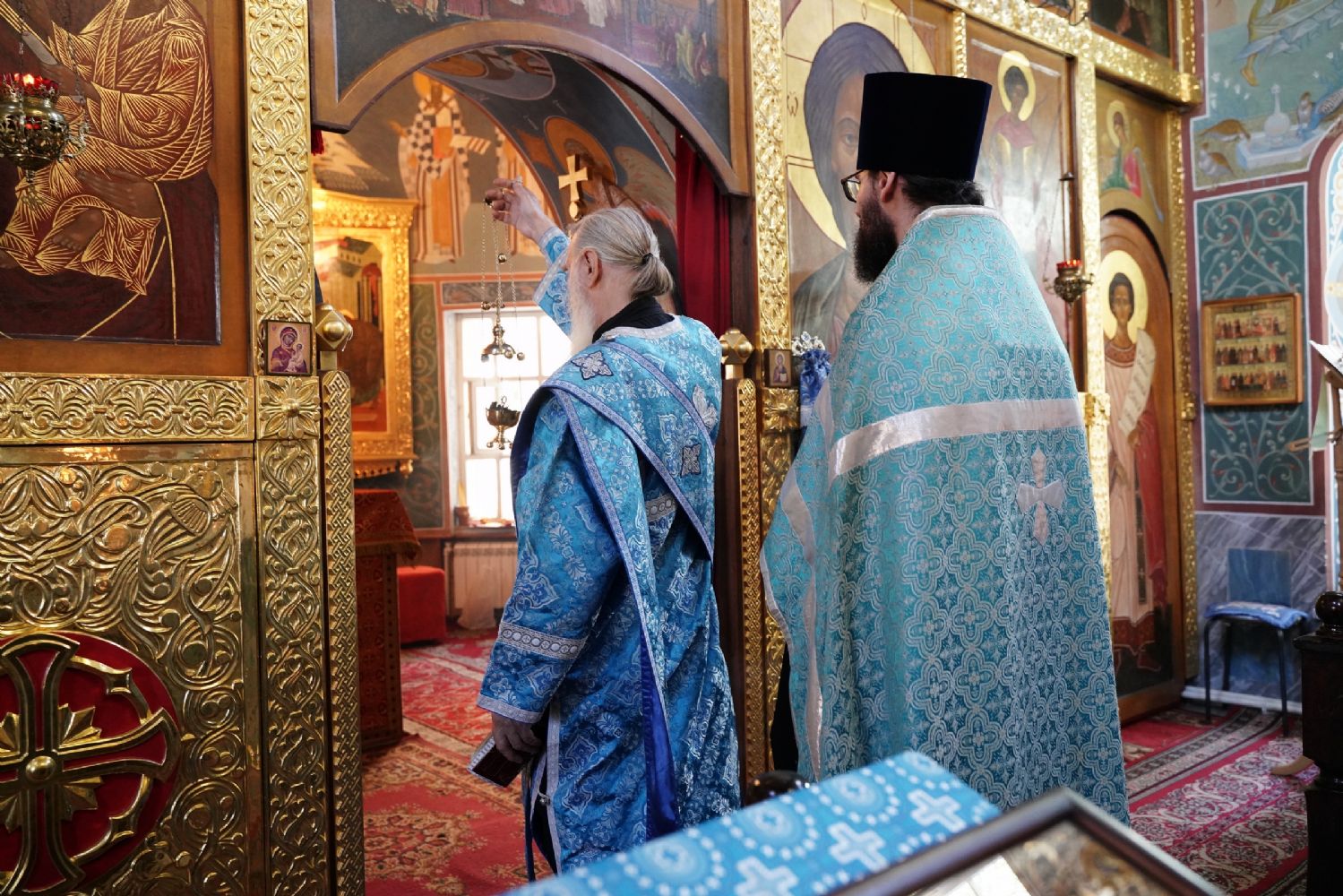 Владыке сослужили благочинный Йошкар-Олинского церковного округа протоиерей Андрей Норкин, клирики Вознесенского собора г. Йошкар-Олы иерей Владимир Глебов, иерей Иоанн Кристев, иерей Александр Деревяшкин, иерей Димитрий Копылов и протодиакон Александр Конокпаев, а также протодиакон Михаил Козловский. Песнопения исполнял хор Тихвинского храма под управлением Марины Богатыревой.